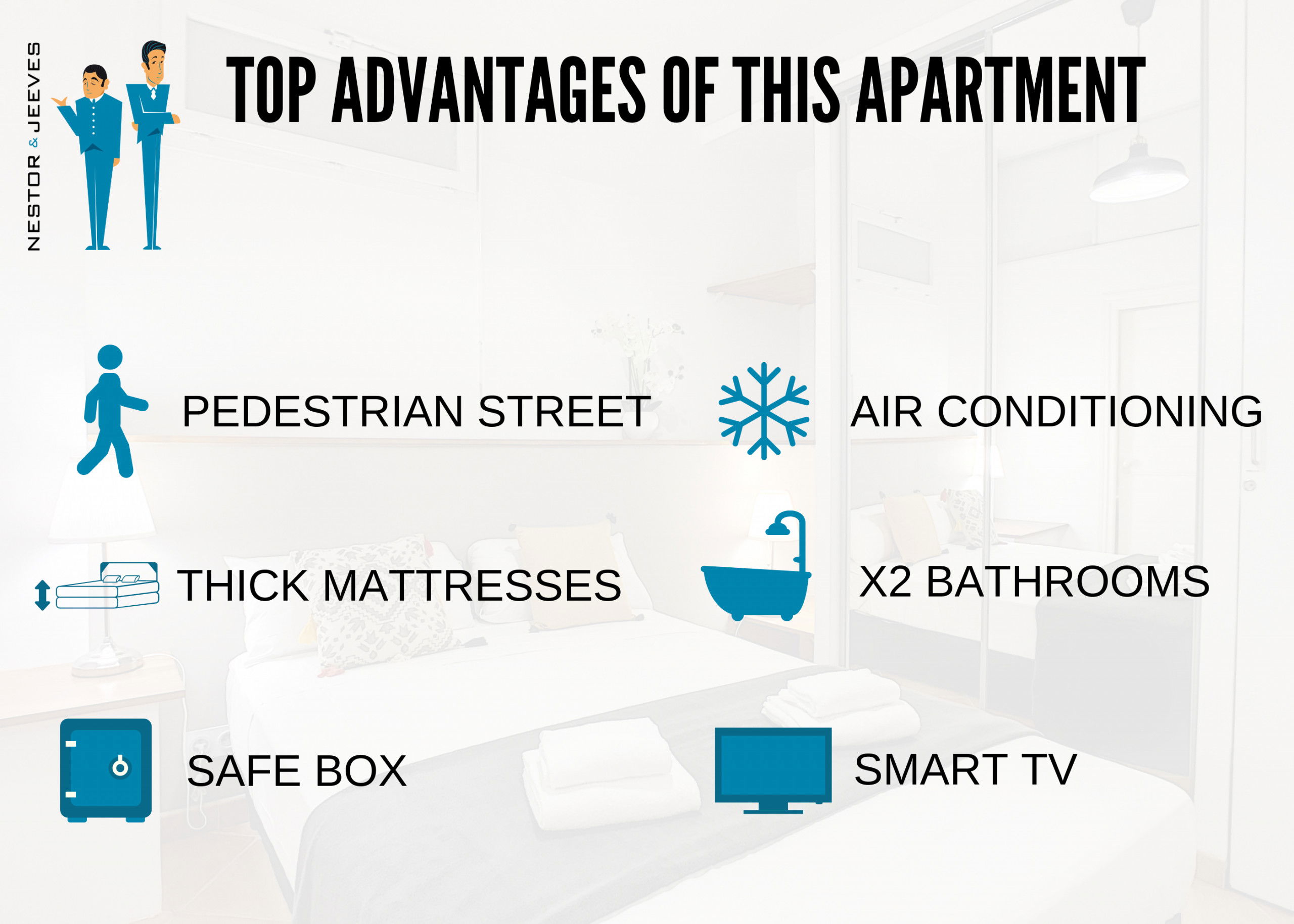Plusieurs endroits incontournables de la ville sont dans un rayon de 4 minutes à pied maximum de l’appartement :