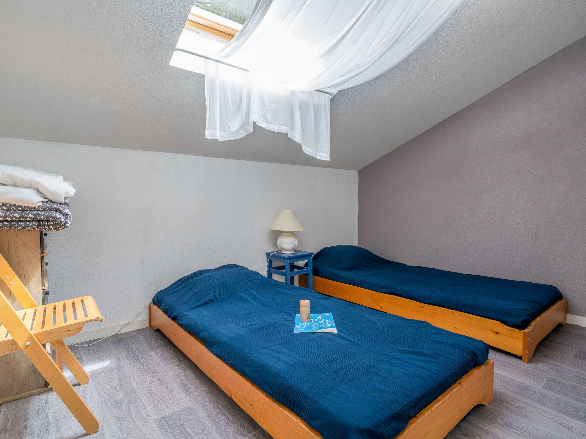 Maison mitoyenne 4 pièces 70 m2 sur 2 niveaux. Aménagement confortable: séjour/salle à manger avec cheminée et écran plat. 1 chambre avec 1 grand-lit. Grande coin cuisine (4 plaques de cuisson, four, lave-vaisselle, 4 plaques vitrocéramiques, cafetière électrique). Douche/WC. À l'étage supérieur: 1 chambre avec 1 lit gigogne (2 pers.). 1 chambre avec 1 grand-lit. Bain/WC. Chauffage électrique, air-conditionné. Terrasse, situation ouest, jardinet. Meubles de terrasse, chaises longues. A disposition: lave-linge, fer à repasser. Internet (Connexion WIFI, gratuit). Place de parking No 18 (2 Voitures). Veuillez noter: logement non-fumeur. Maximum 1 animal/ chien autorisé. Détecteur de fumée.