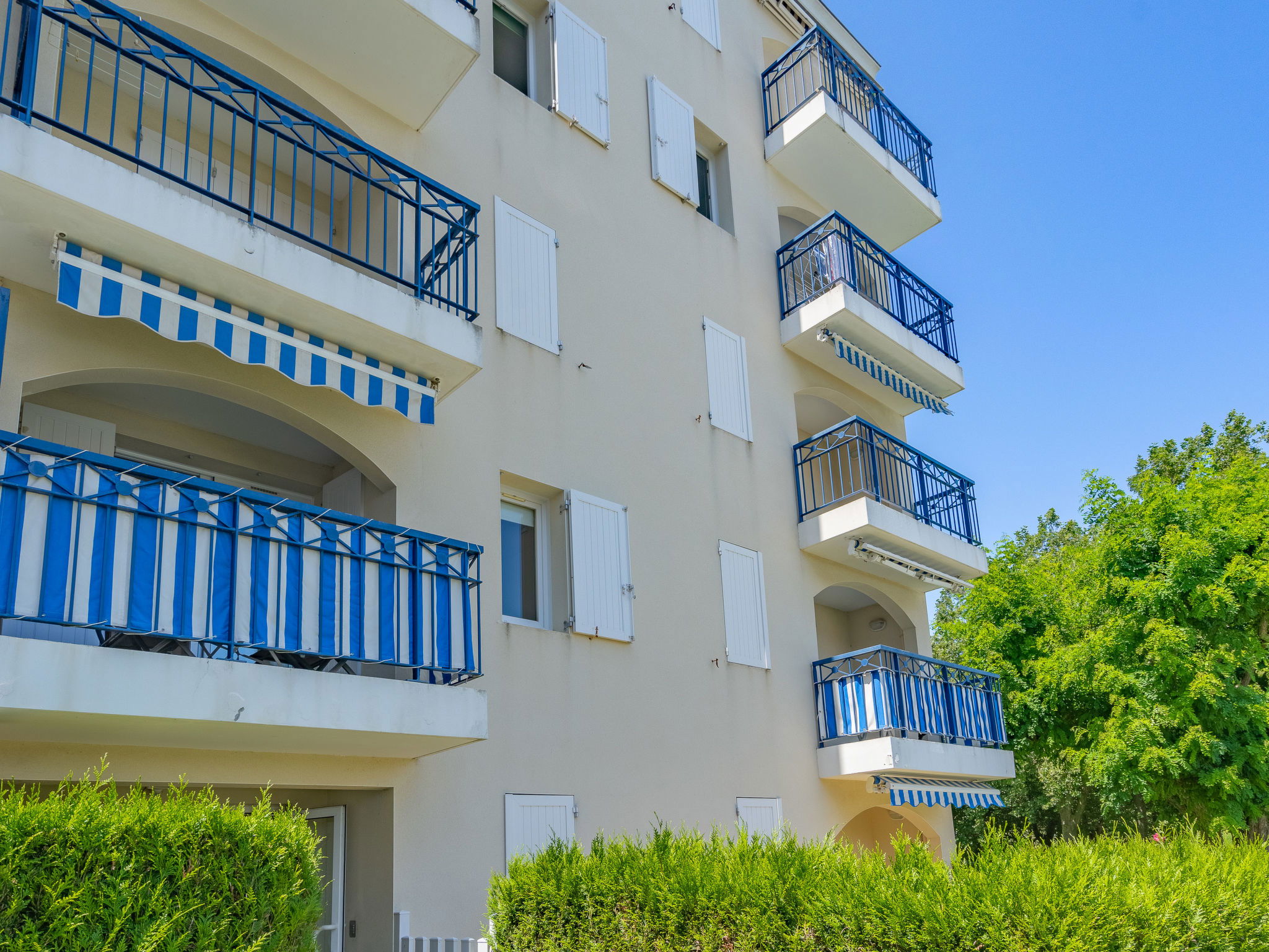 Vaux sur Mer à 2 km de Royan: Grande résidence "Parc de Pontaillac", de 4 étages. 215 appartements dans la résidence. Dans le quartier de Pontaillac, à 2 km du centre de Vaux sur Mer, à 2.3 km du centre de Royan, situation animée dans un quartier résidentiel, à 200 m de la mer, à 200 m de la plage. En commun: piscine rectangulaire cloturée (15 x 7 m, disponibilité saisonnière: 01.Jul. - 31.Aou.). Infrastructures de la Maison: ascenseur, réduit pour bicyclettes. Parking public possible dans la rue. Magasins 200 m, supermarché 1.4 km, restaurant, bar, boulangerie, café 200 m, arrêt de bus "Porte Océane" 100 m, gare ferroviaire "Royan" 3.2 km, plage de sable "Pontaillac" 200 m, parc "Luna Park (Juillet-Août)" 17 km, piscine couverte 3 km, centre thermal "Thalassothérapie Thalazur Royan" 1.7 km, lac Métairie - Royan 1.5 km. Port plaisance 2.4 km, terrain de golf (18 trous) 5.5 km, ecole de surf 200 m, ecole de voile 2.5 km, tennis 2 km, tennis couvert 2 km, golf miniature 550 m, centre équestre 6 km, piste cyclable 100 m. Attractions à proximité: Casino Barrière 250 m, Palais des Congrès - Royan 2 km, Embarcadère Royan - Le Verdon 2 km, Zoo de La Palmyre 12 km, Hippodrome - La Palmyre 13 km, Centre aquatique Iléo - Ile d'Oléron 47 km. Veuillez noter: D’autres appartements sont également proposés à la location dans cette maison de vacances.