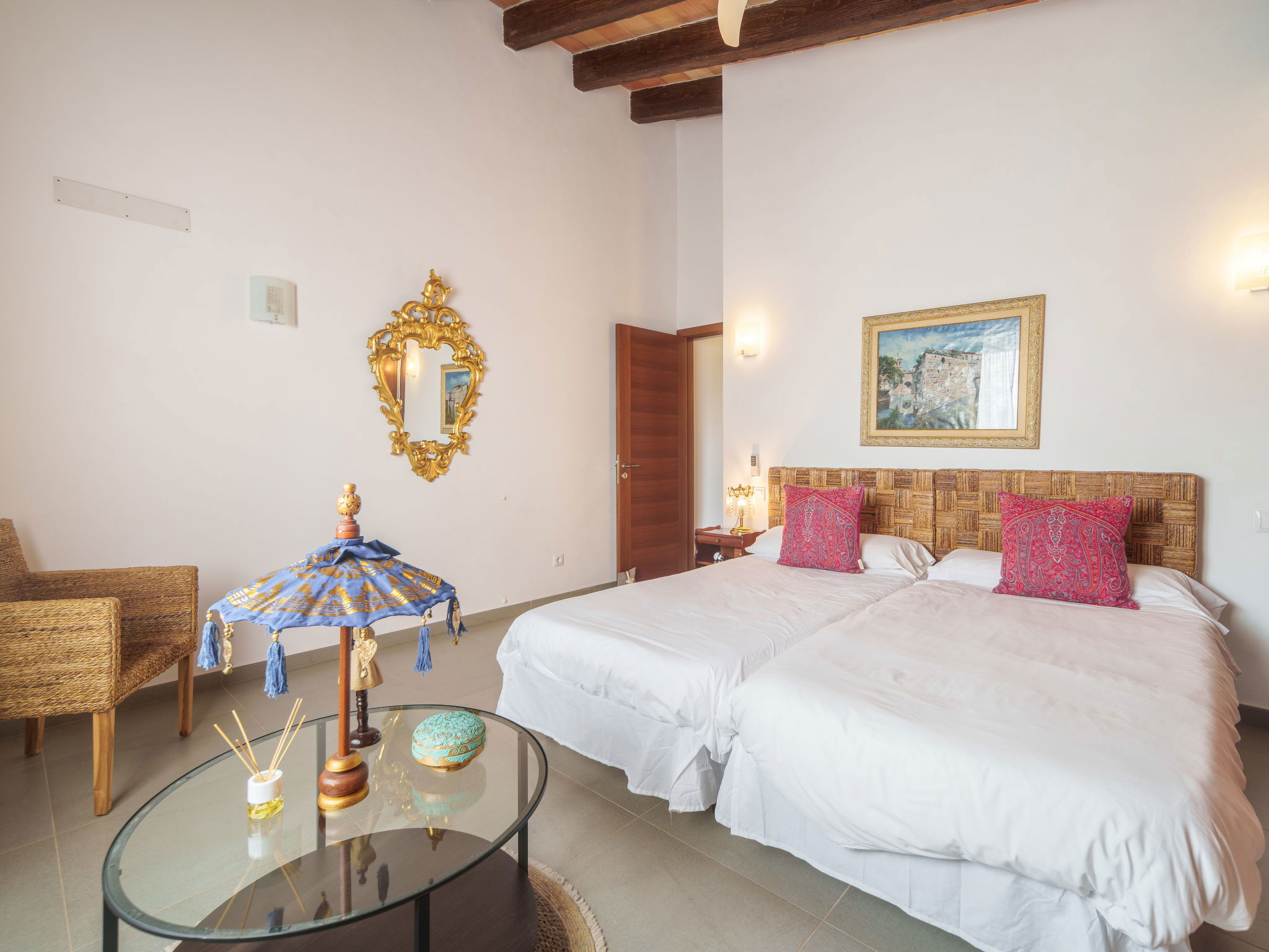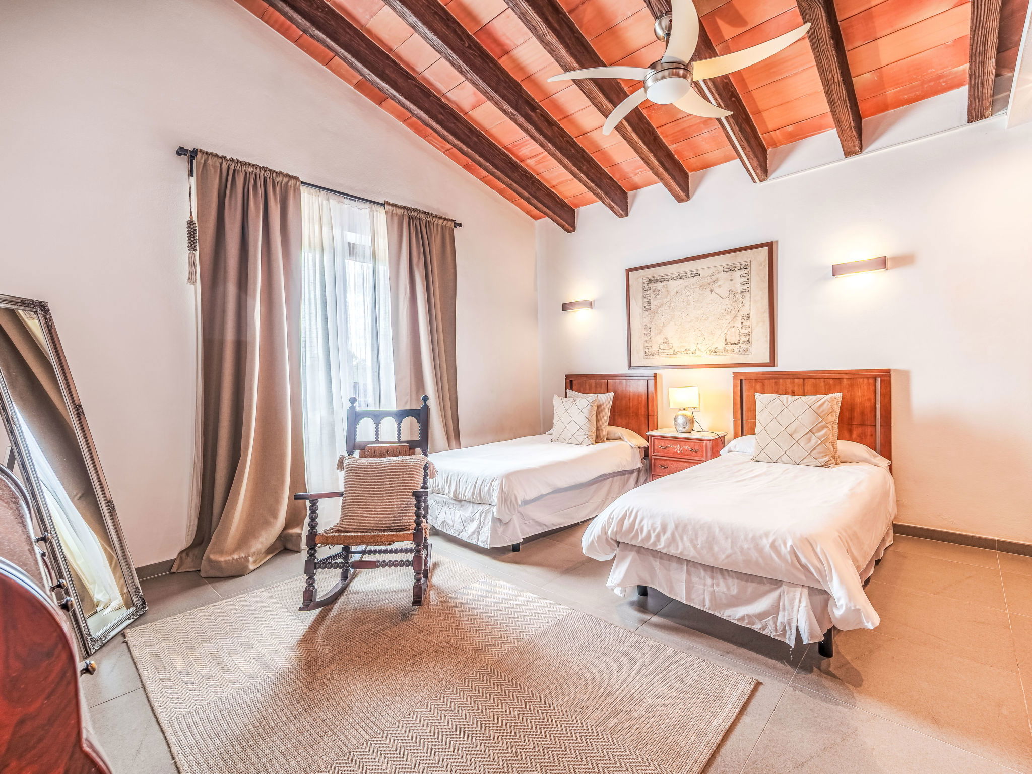 Artà à 3 km de Artá: Beau, grand domaine moderne "Bellpuig", renové, environné par les arbres et champs. En-dehors de la localité, à 3.5 km du centre d'Artà, situation tranquille, ensoleillée, à 11 km de la mer, à 11 km de la plage, dans la verdure. A usage privé: terrain à l'état naturel (clôturé), beau jardin entretenu avec plantes, piscine rectangulaire (10 x 4 m, profondeur 140 - 160 cm, disponibilité saisonnière: 01.Jan. - 31.Dec.). Douche extérieure, jardinet, tonnelle, pergola, meubles de jardin, barbecue, entretien de la piscine par le propriétaire/jardinier. Infrastructures de la Maison: accès internet, Connexion WIFI, réduit pour bicyclettes, lave-linge. Place de parking près de la maison sur le terrain. Magasins 3.5 km, supermarché 3.8 km, restaurant 3.4 km, bar 3.4 km, boulangerie 3.6 km, location de bicyclettes 3.8 km, centre à 48 minutes à pieds, arrêt de bus "Artà" 3 km, gare ferroviaire "Manacor" 22 km, plage de sable "Cala Bona,Sa Marjal,Cala Millo" 12 km. Port plaisance 12.5 km, terrain de golf (18 trous) 8.3 km, tennis 3.5 km, chemins de randonnées pédestres depuis la maison 2 km, piste cyclable 150 m. Attractions à proximité: Artá, Son Servera, Capdepera, St Lorenzo, Artá Local Market (Tuesday 9-14h) 4.7 km, Colonya de Sant Pere, Betlem. Région de randonnées: Ermita de Betlem, Parc Natural de Llevant. Veuillez noter: voiture recommandée. Adapté(e) aux familles, indiqué pour séniors. Bien convenant à 8 adultes. Le propriétaire n'accepte pas les groupes de jeunes. Animaux dans le voisinage. Aéroport 65 km de la maison.
