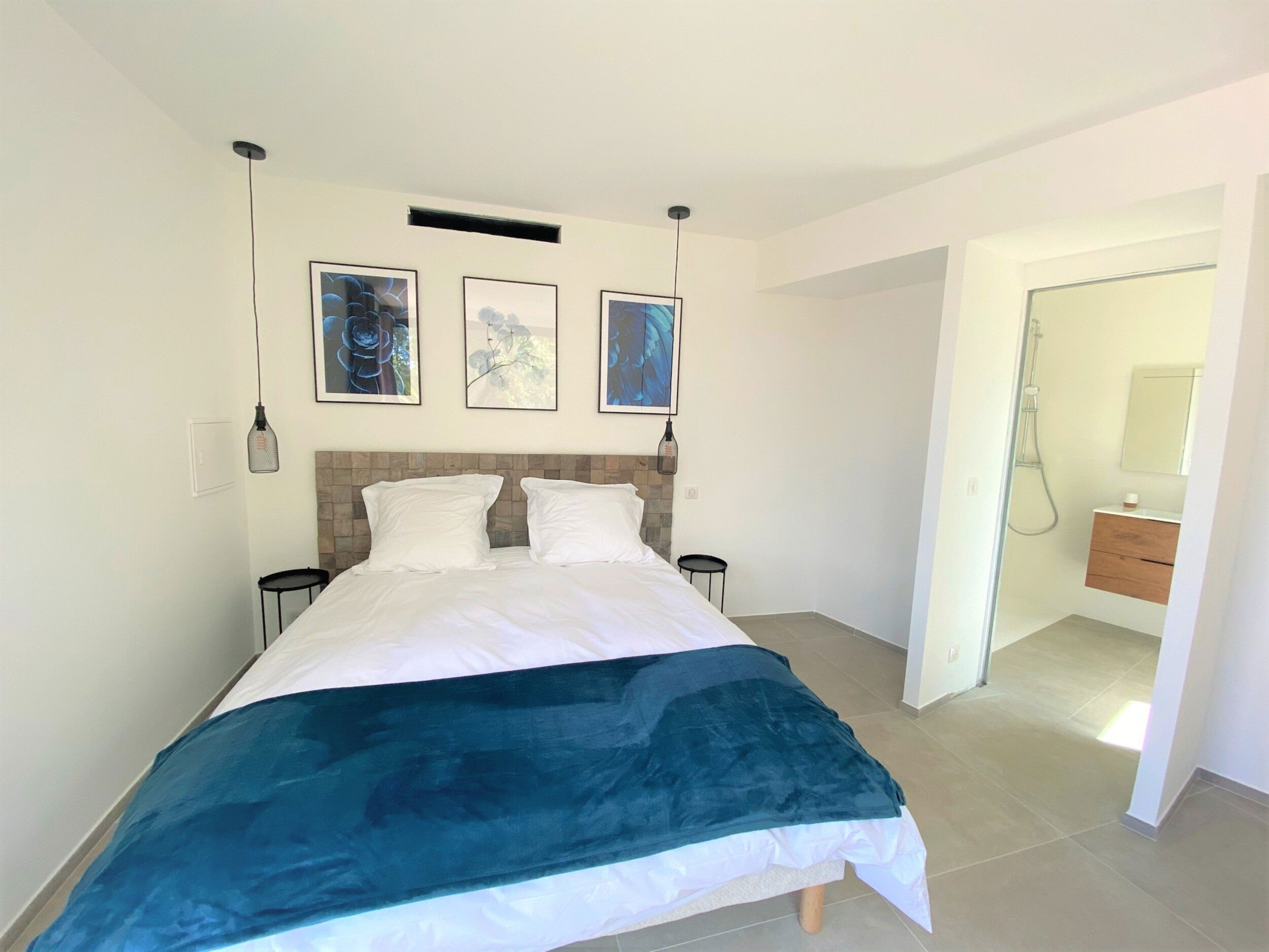 - Chambre 2 : Lit Queen Size (160*200) avec salle de douche. Chambre indépendante avec son propre accès extérieur donnant sur la terrasse et la piscine.