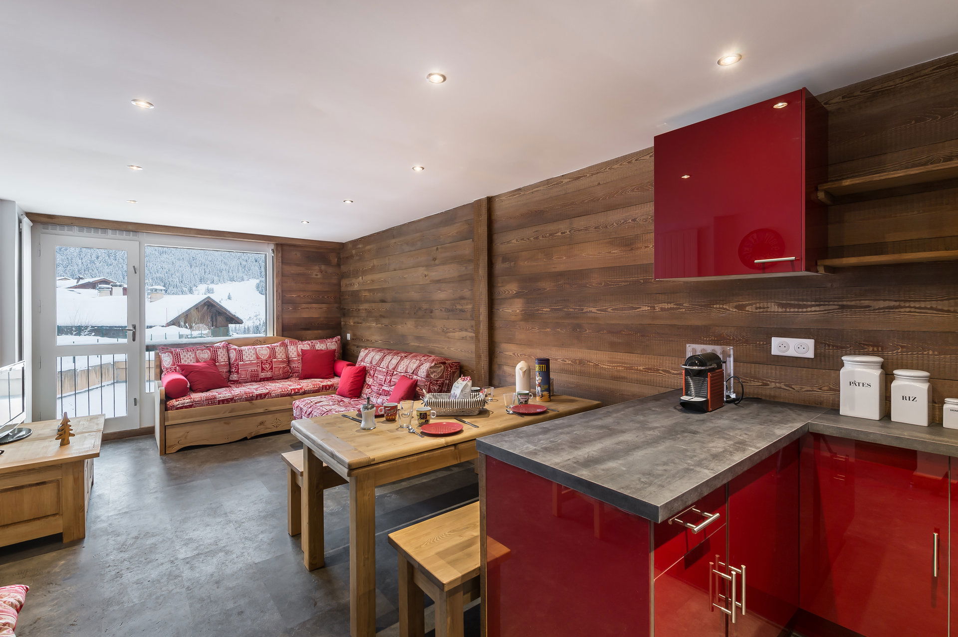 Proche du départ des pistes et à côté des commerces, cet appartement chaleureux offre une très belle vue sur les montagnes.
