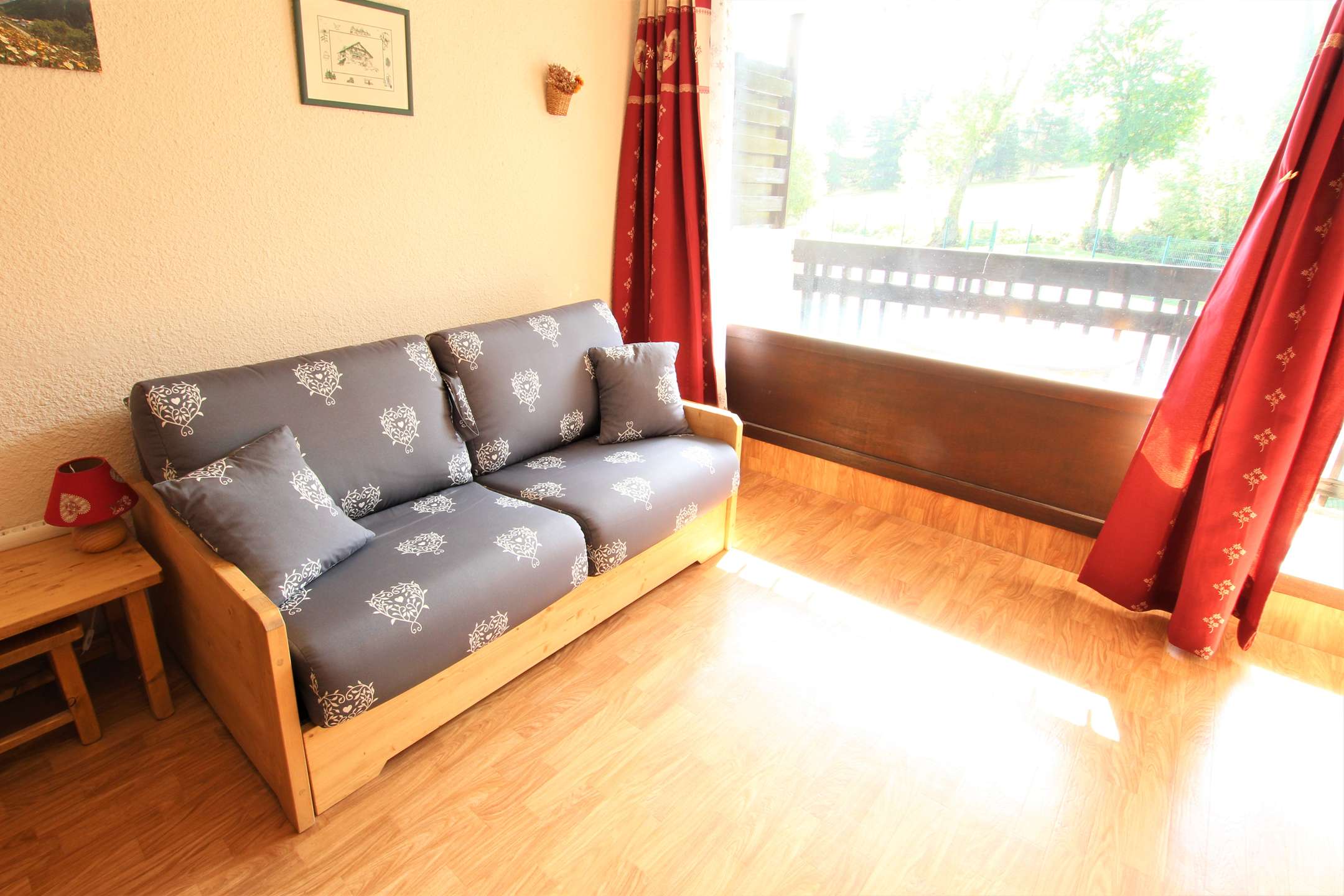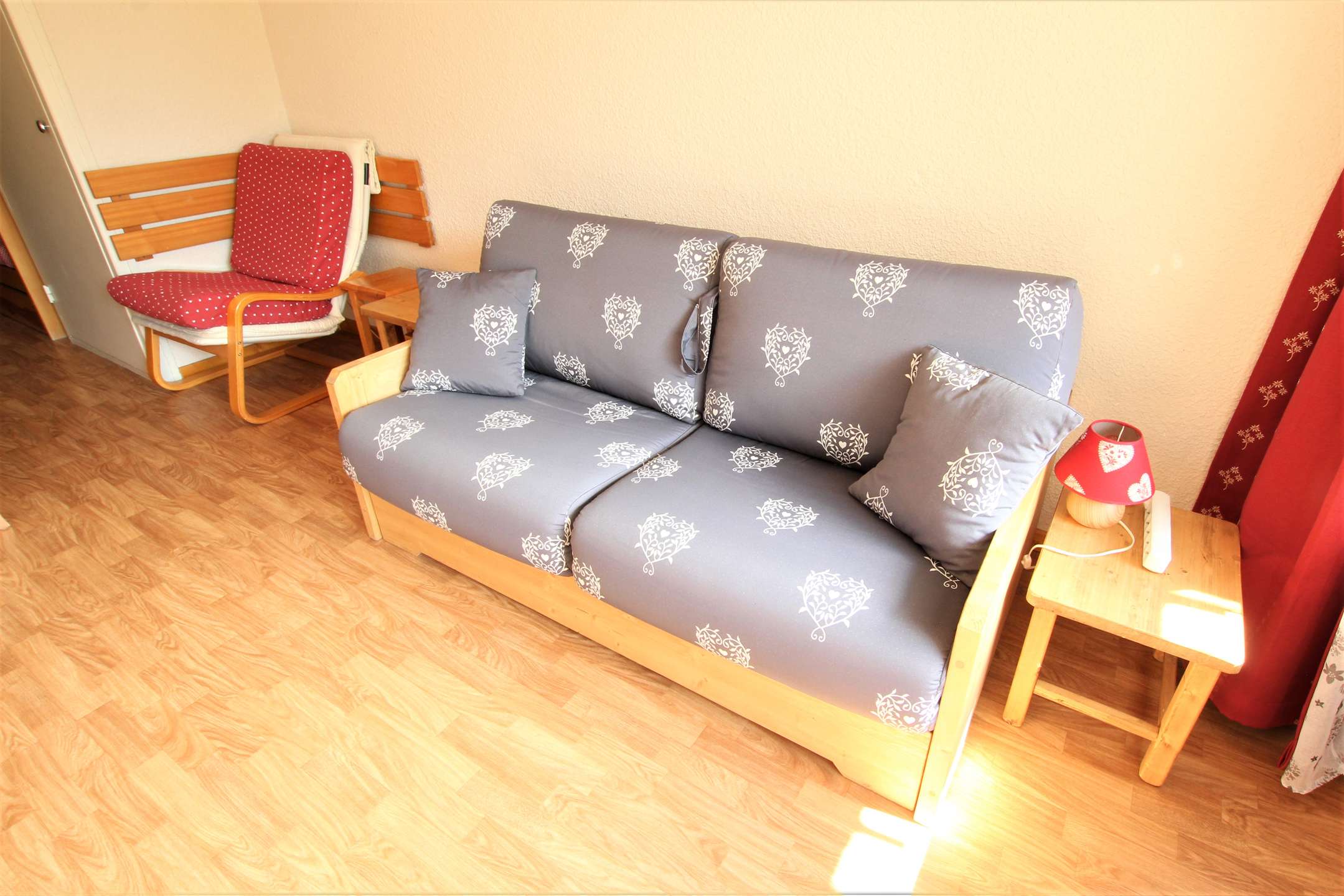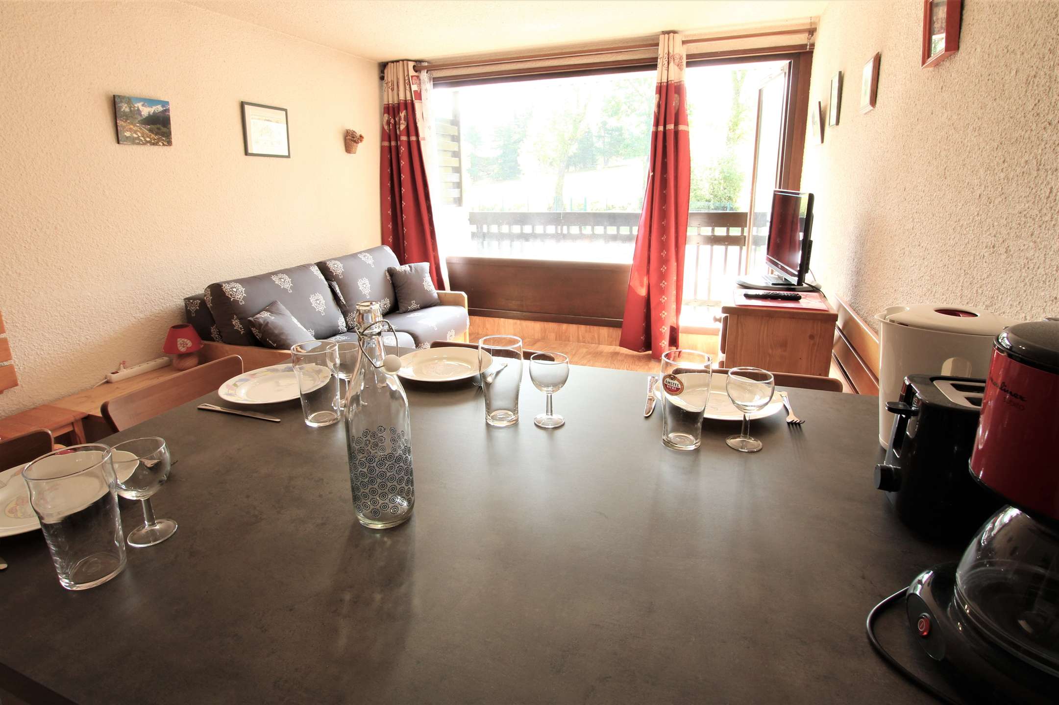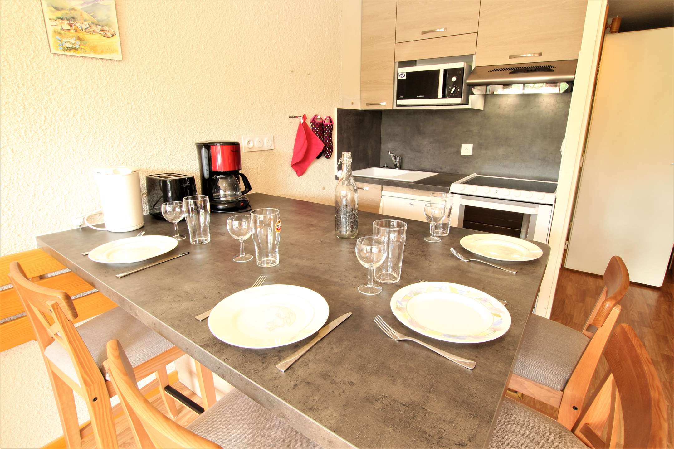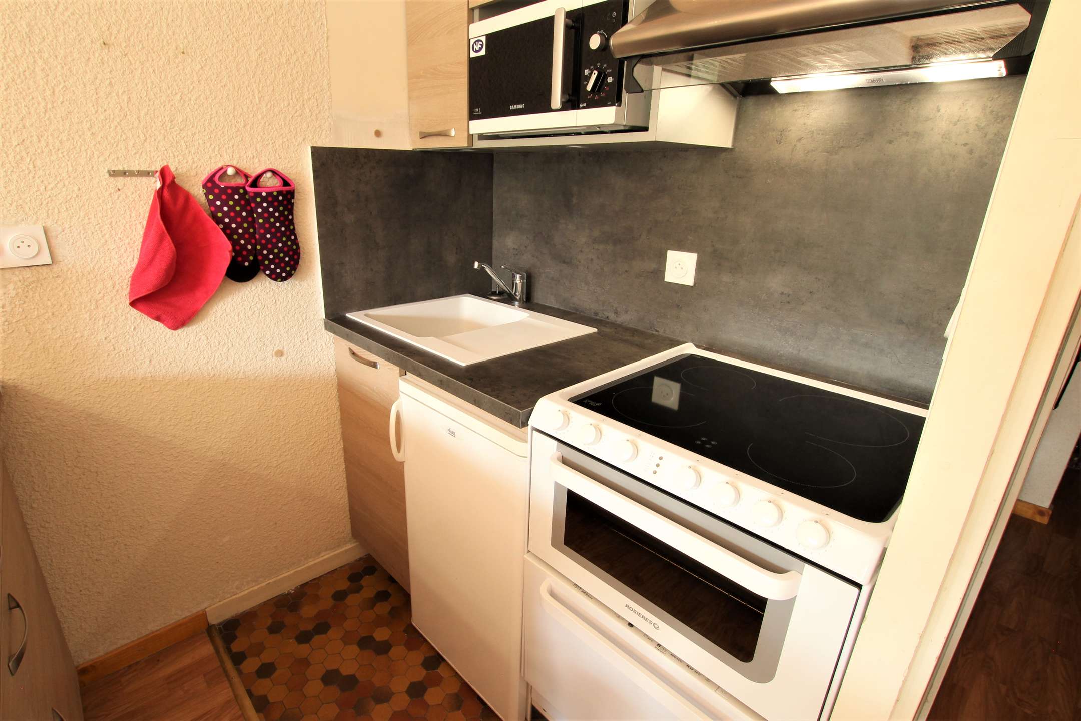 Ce charmant studio se compose d'un coin montagne avec des lits superposés , d'un séjour avec une banquette lit gigogne ( 2 places ) et une télévision, d'un coin cuisine équipé d'une cuisinière électrique avec trois plaques et un four et d'un lave vaisselle. La salle d'eau et les WC sont indépendants.