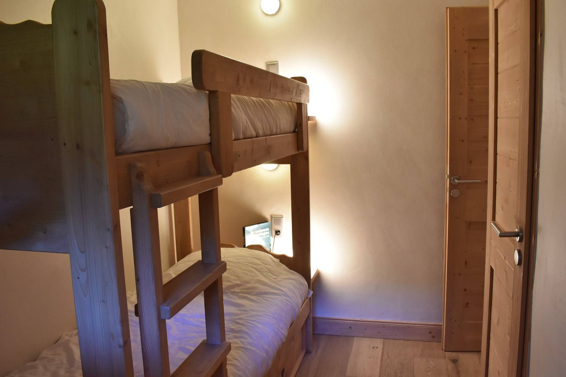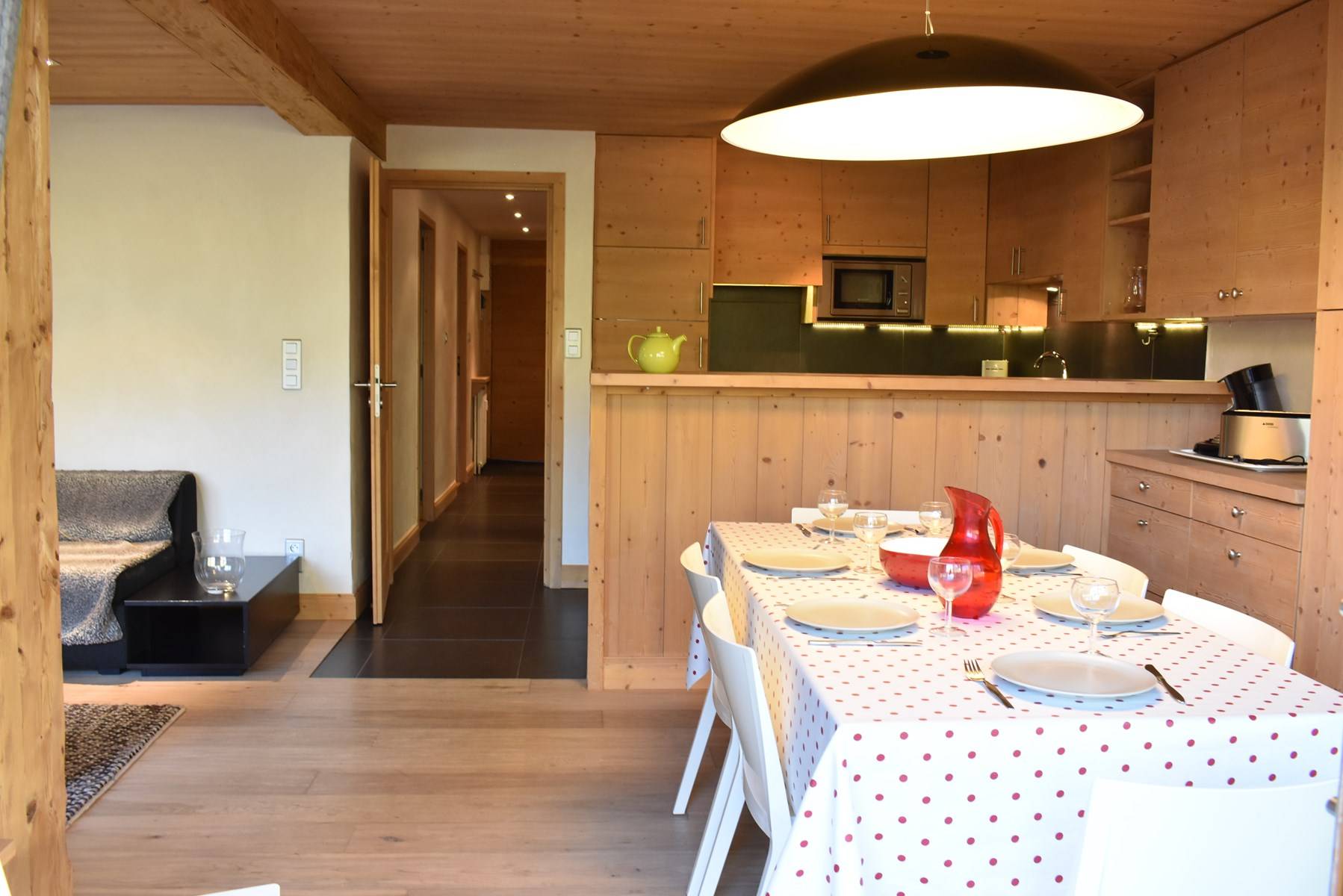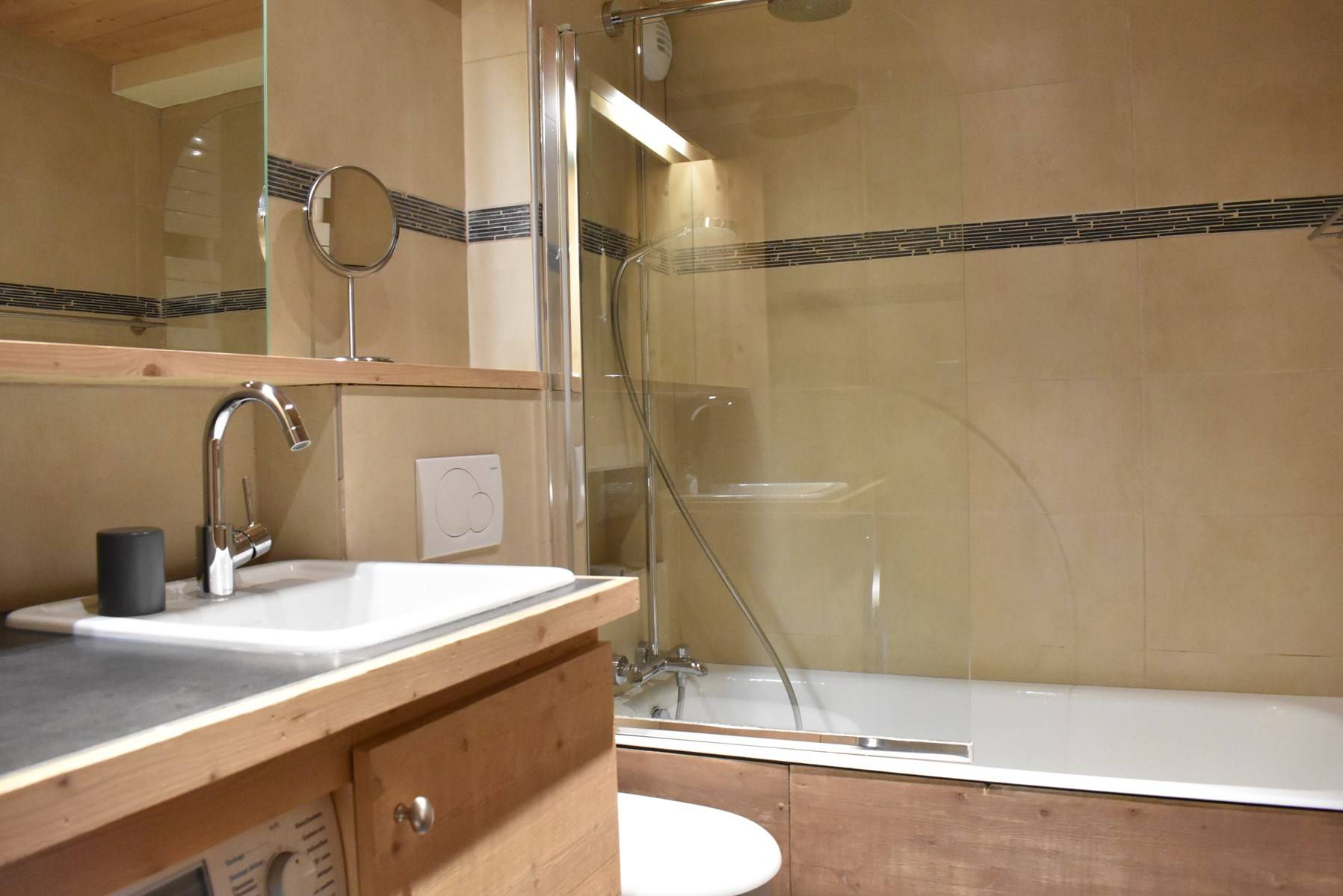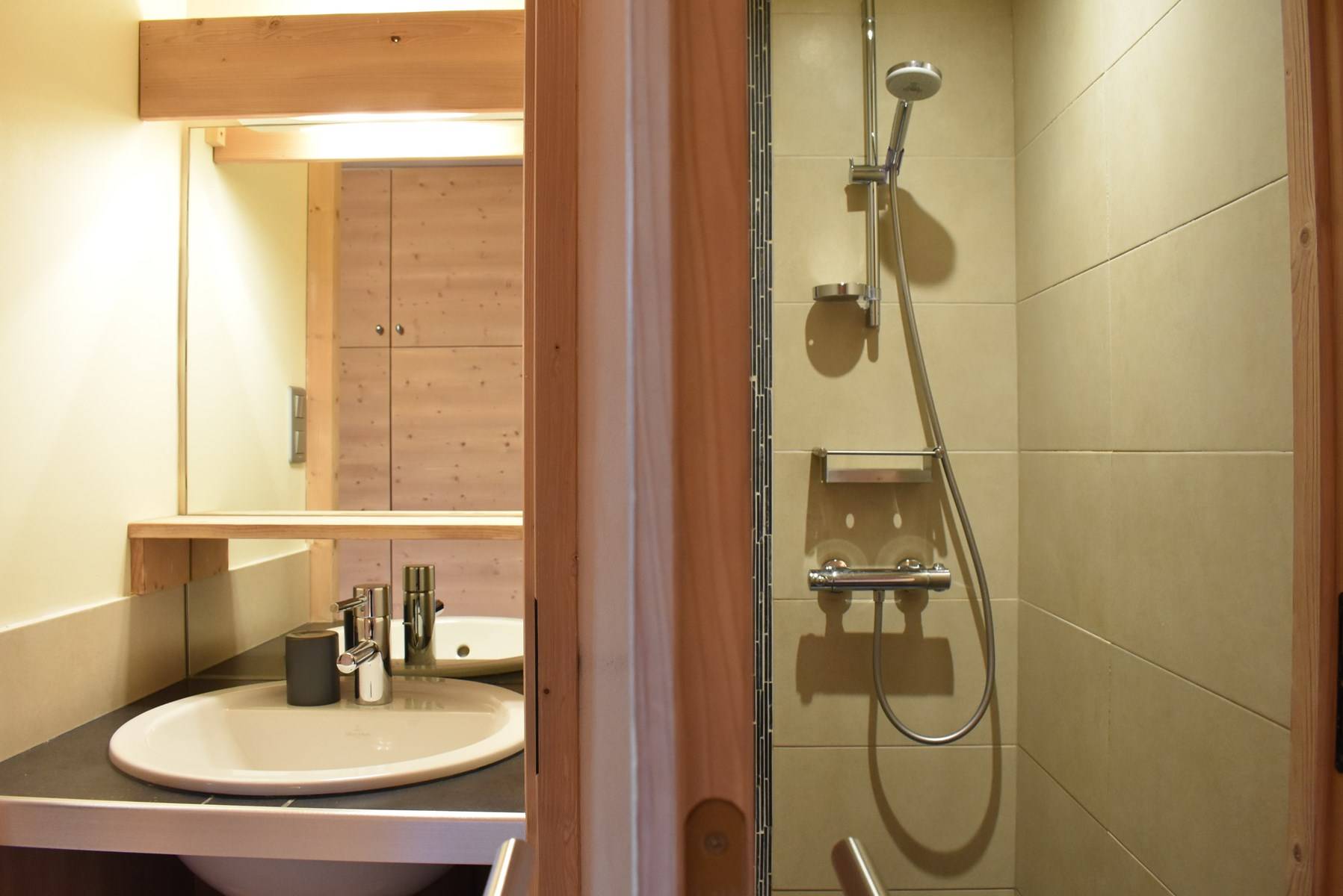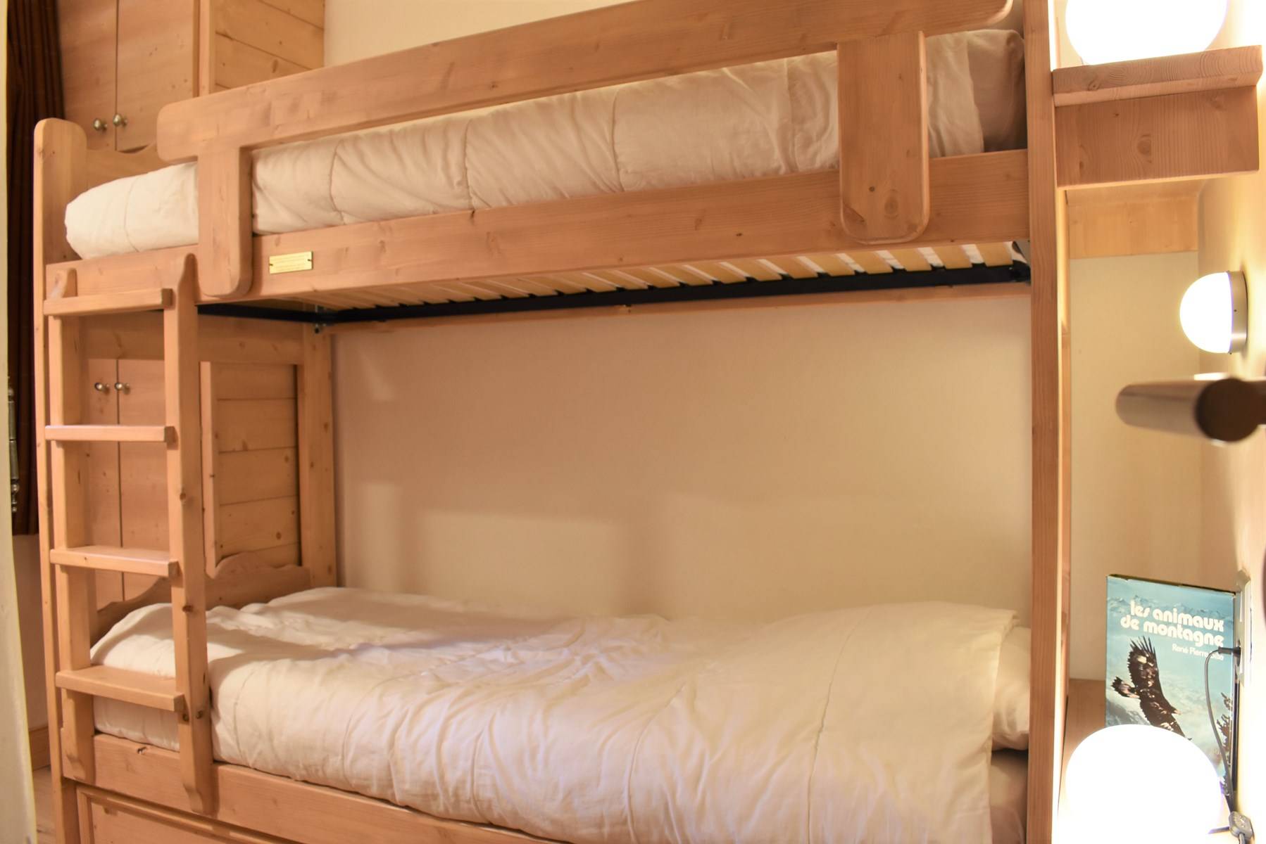 Cet appartement à la montagne situé au rez-de-chaussée bas avec ascenseur, comprend un séjour et salon, une cuisine équipée ouverte sur le séjour, 1 chambre 2 lits 1 personne avec douche et coin lavabo, 1 chambre 2 lits 1 personne en 90 rapprochés avec coin lavabo, 1 chambre 1 ensemble de lits superposés, 1 salle de bain avec WC et lave linge/sèche linge et un WC indépendant.