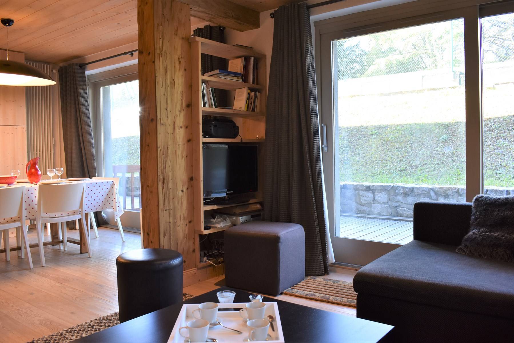 A 50m des pistes, appartement bien aménagé en rez de jardin avec prestations...