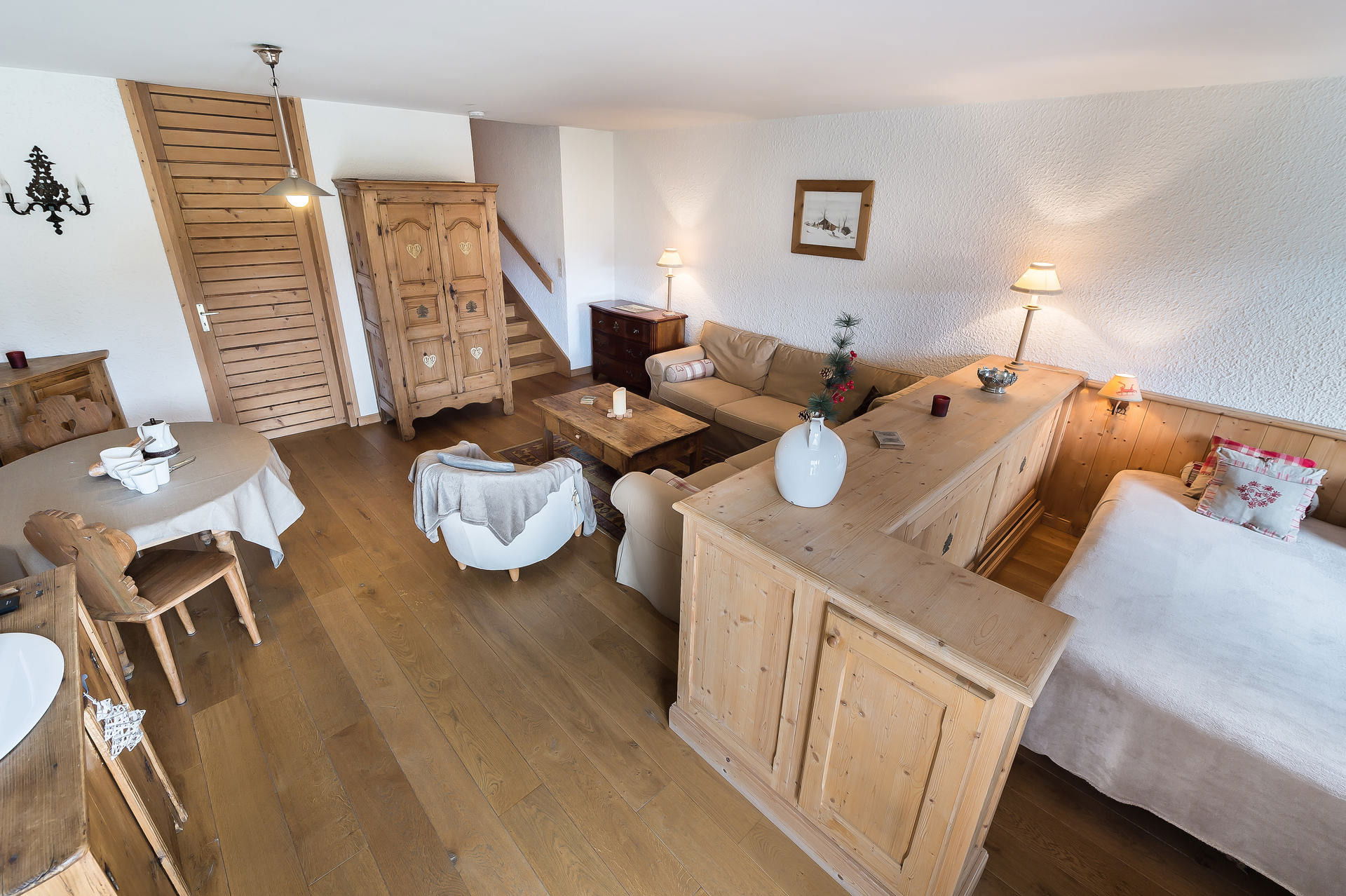 SITUATION : Studio situé en rez de jardin d'une résidence, à 400m des pistes de ski et du golf du MONT D'ARBOIS, à 3kms du centre du village.