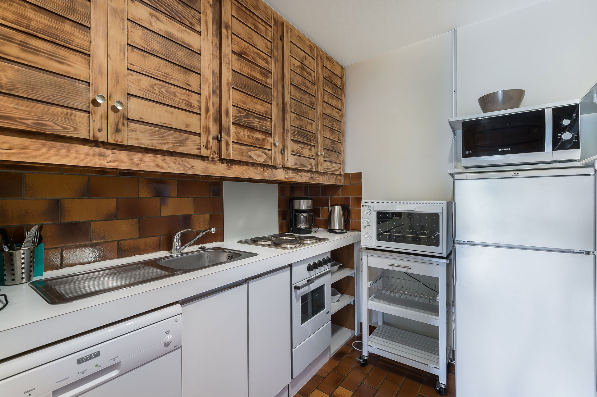 - cuisine avec 4 plaques électrique, four, réfrigérateur avec congélateur, micro-ondes et lave-vaisselle.