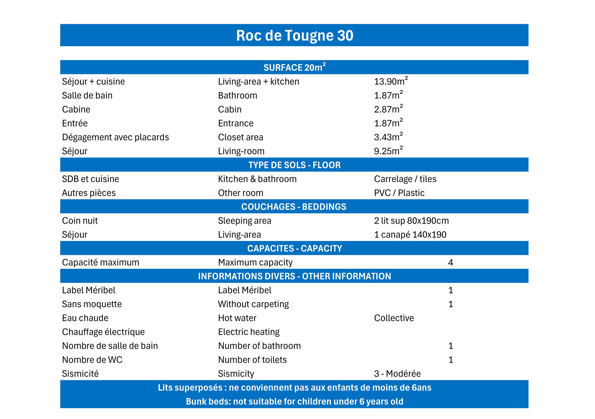 - 4 couchages