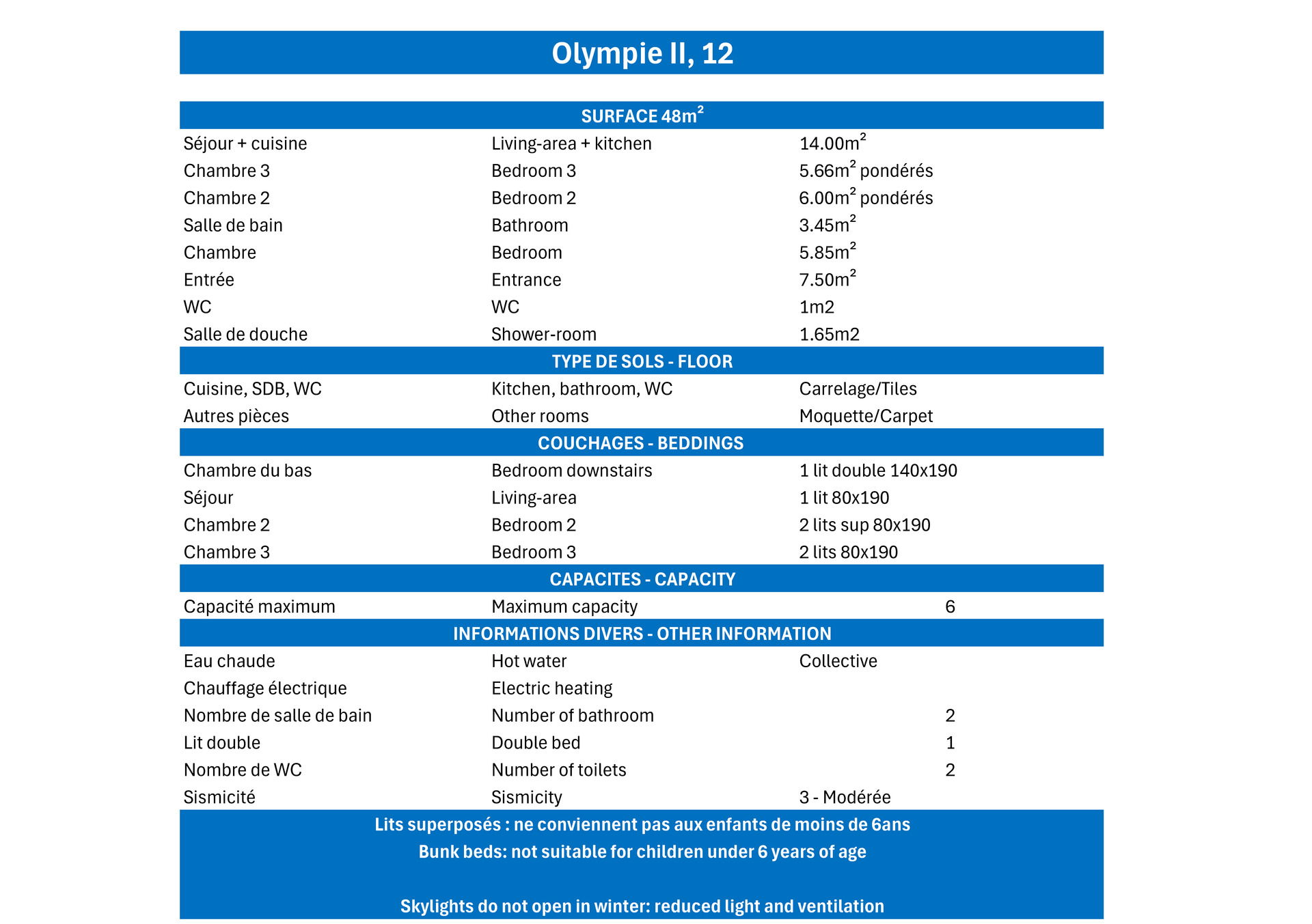 RESIDENCE OLYMPIE II N° 12 - Type G1 Classement 3* pour 5 personnes 4 Pièces...