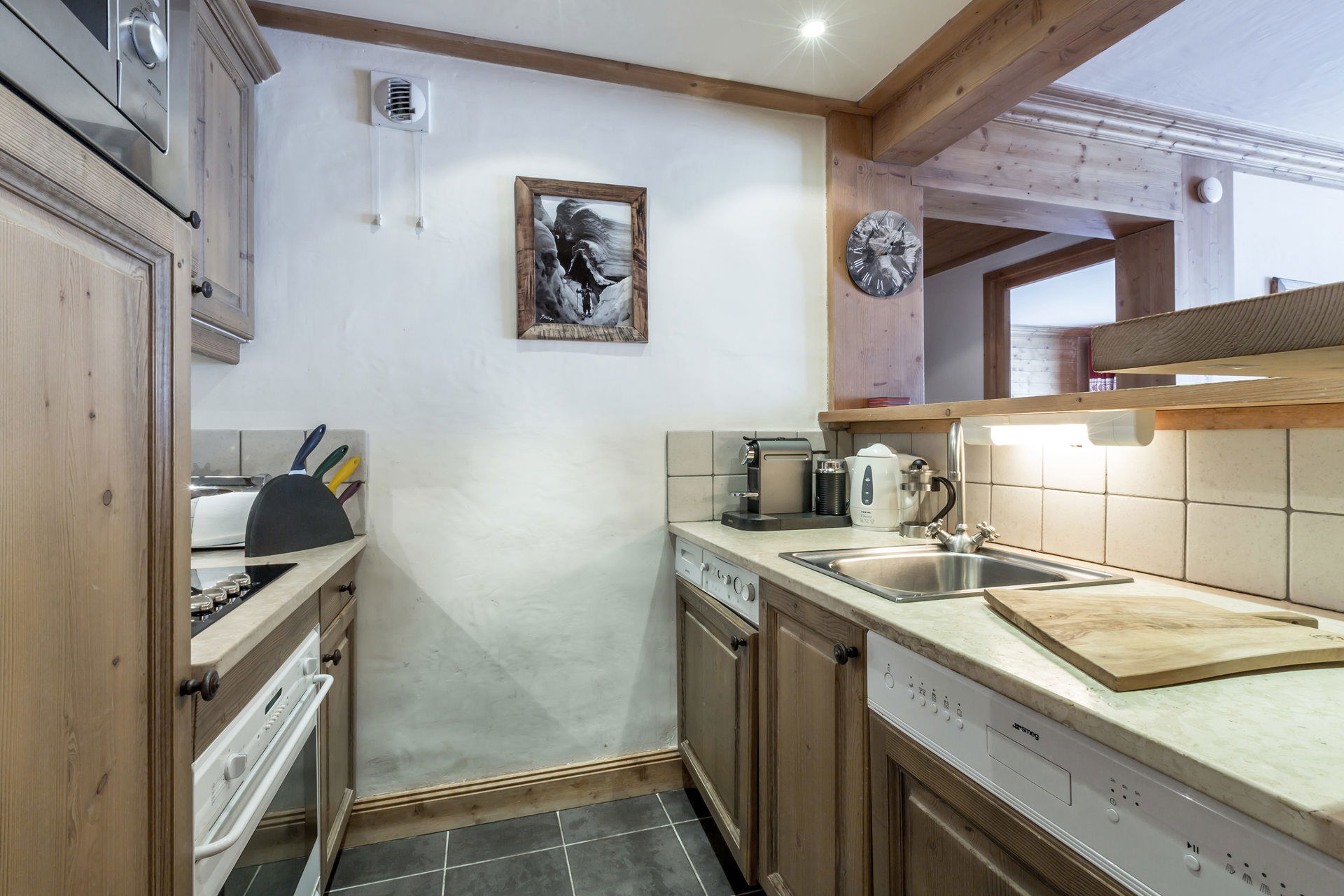 Equipée d'un lave-vaisselle, four, micro-ondes et lave-linge