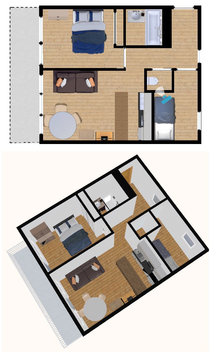 2 pièces avec cabine de 40m2 pouvant accueillir 6 personnes