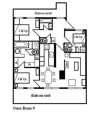 Cet appartement dans les 3 vallées, situé au 3ème étage, avec ascenseur, comprend un séjour/salle à manger avec cheminée et télévision, une cuisine équipée avec lave-vaisselle ouverte sur le séjour, une chambre avec un lit 2 personnes (140) avec sa salle de douche et son wc indépendant, une chambre avec 1 lit 160x200 et sa salle de bain et wc indépendant, une chambre avec 1 lit 2 personnes (180x200) avec sa salle de bain, douche, dressing, wc, lave-linge et sèche-linge, un balcon loggia Sud/Ouest, une place de parking dans le garage et un casier à ski.