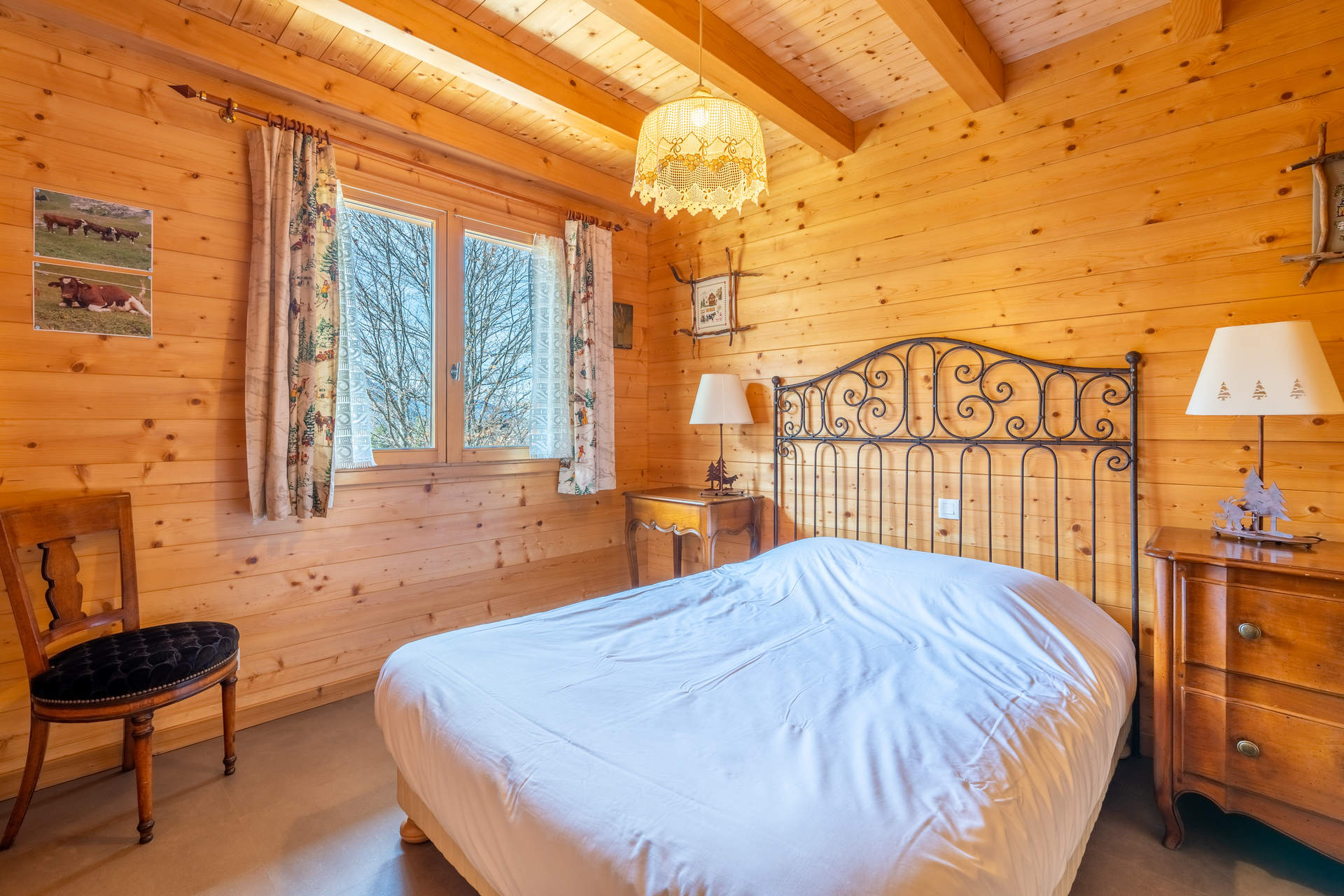 - CHAMBRE (10.19 m²) : 1 LIT 2 PLACES (140), fenêtre est, vue chalets voisins / route de la Sence / montagne