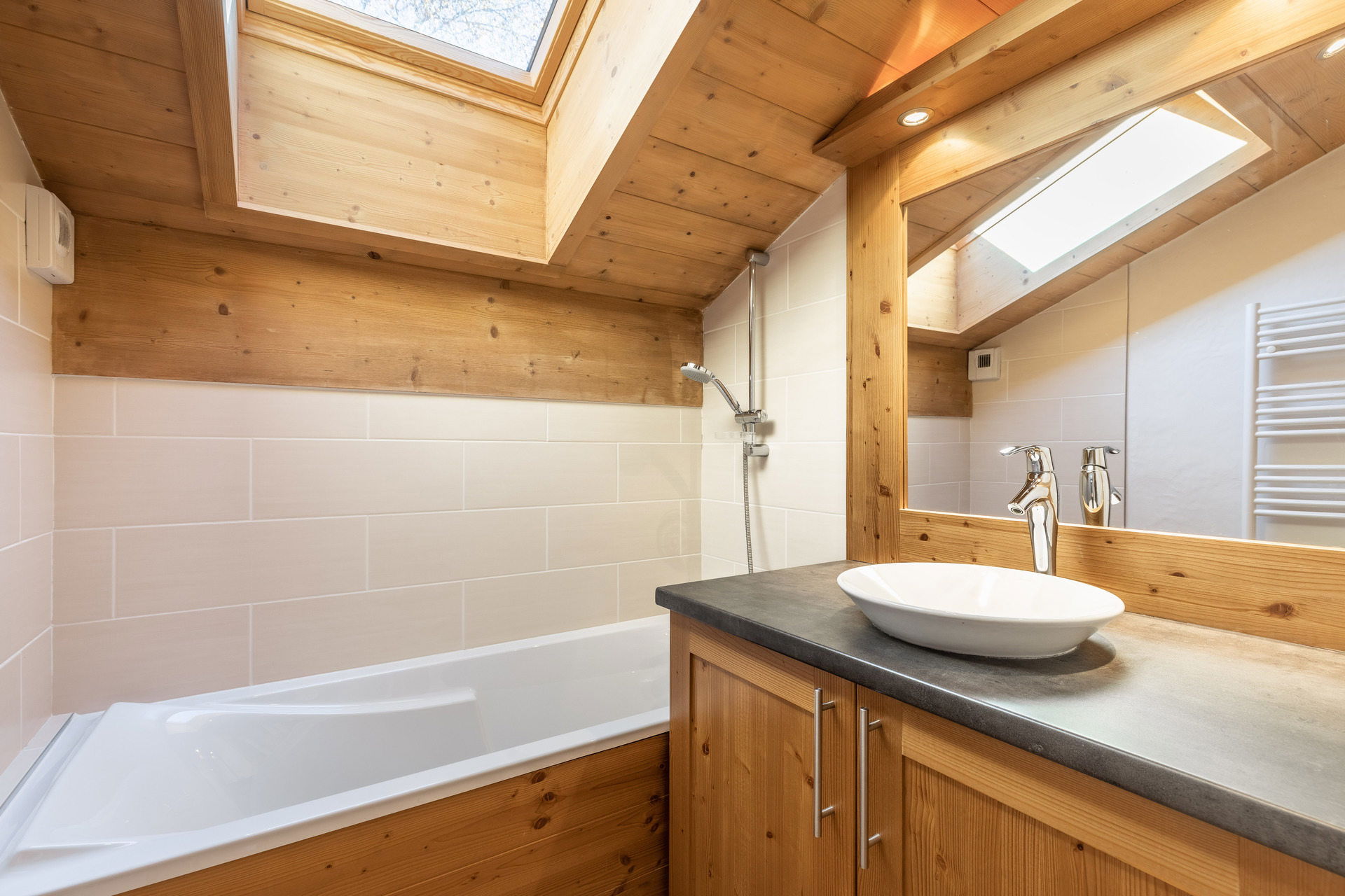 - SALLE DE BAINS (3.06 m²) : baignoire, vasque, radiateur SECHE-SERVIETTE, vélux