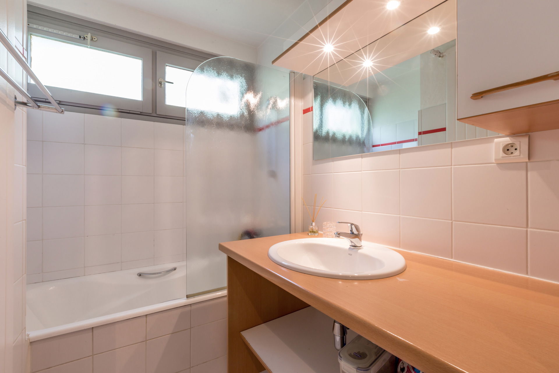 - SALLE DE BAINS (2.90 m²) : lavabo, baignoire, radiateur SECHE-SERVIETTES, LAVE-LINGE SECHANT, fenêtres hautes nord