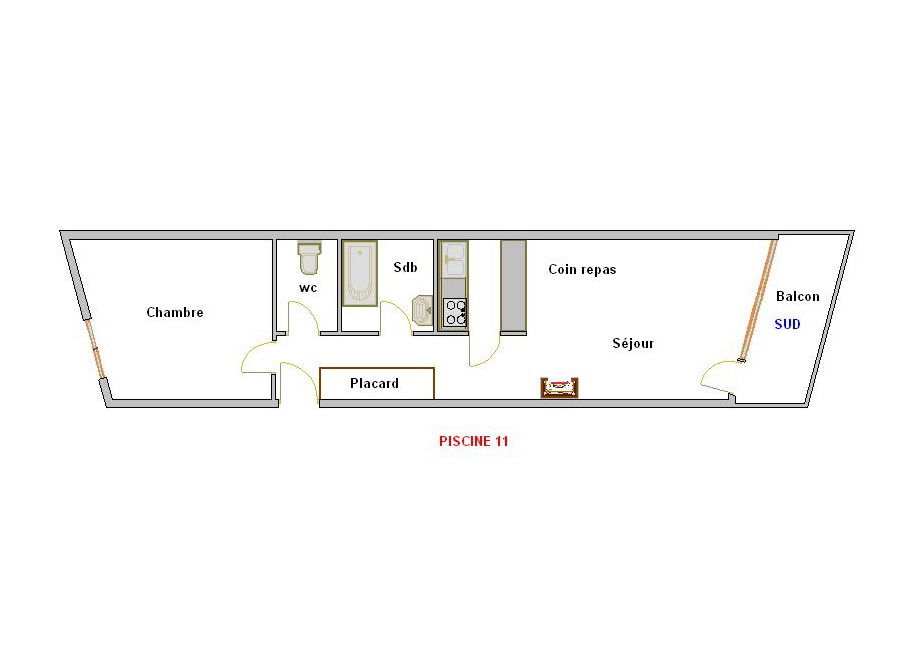 2 PIECES / 4 adultes + 1 enfant / 39 m² / 1er étage / Sud
