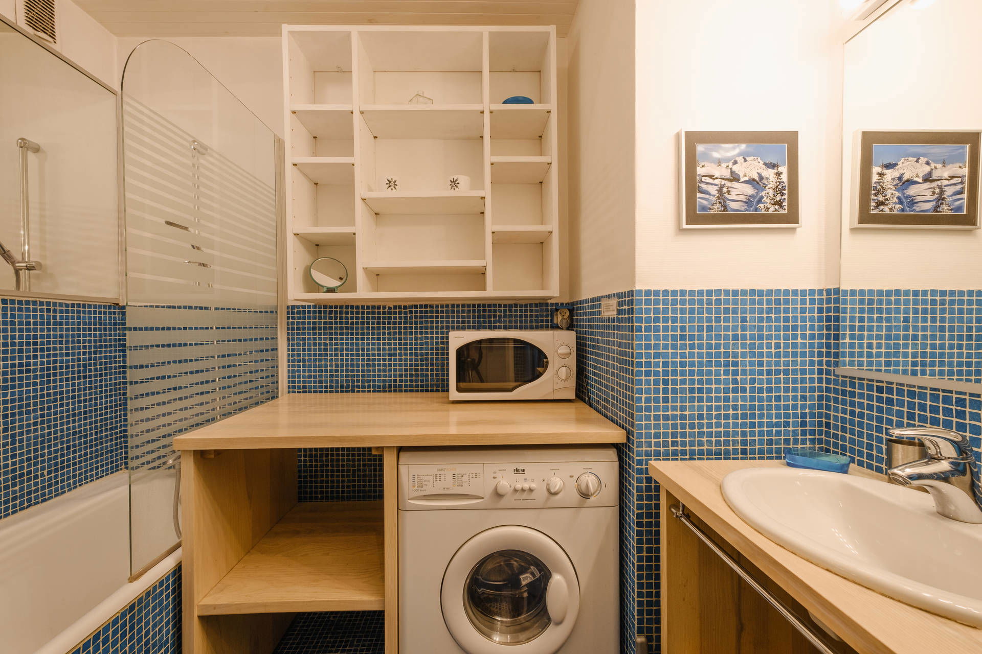 - SALLE DE BAINS (3.51 m²) : lavabo, baignoire, LAVE-LINGE SECHANT, MICRO-ONDES
