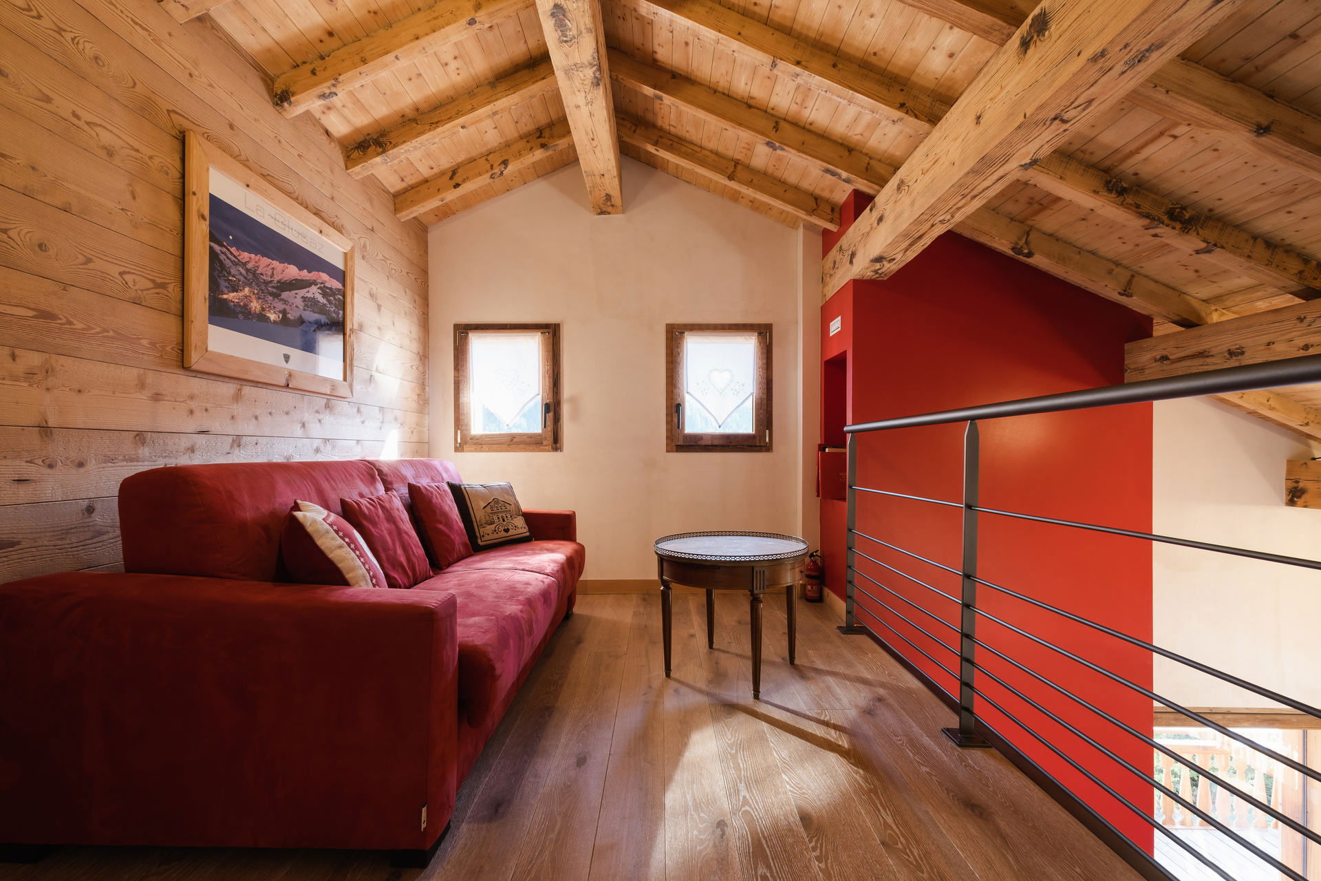 - MEZZANINE ouverte sur le séjour (10.53 m²) : 1 CANAPE LIT 2 PLACES RAPIDO (140), fenêtres sud, vue panoramique montagne