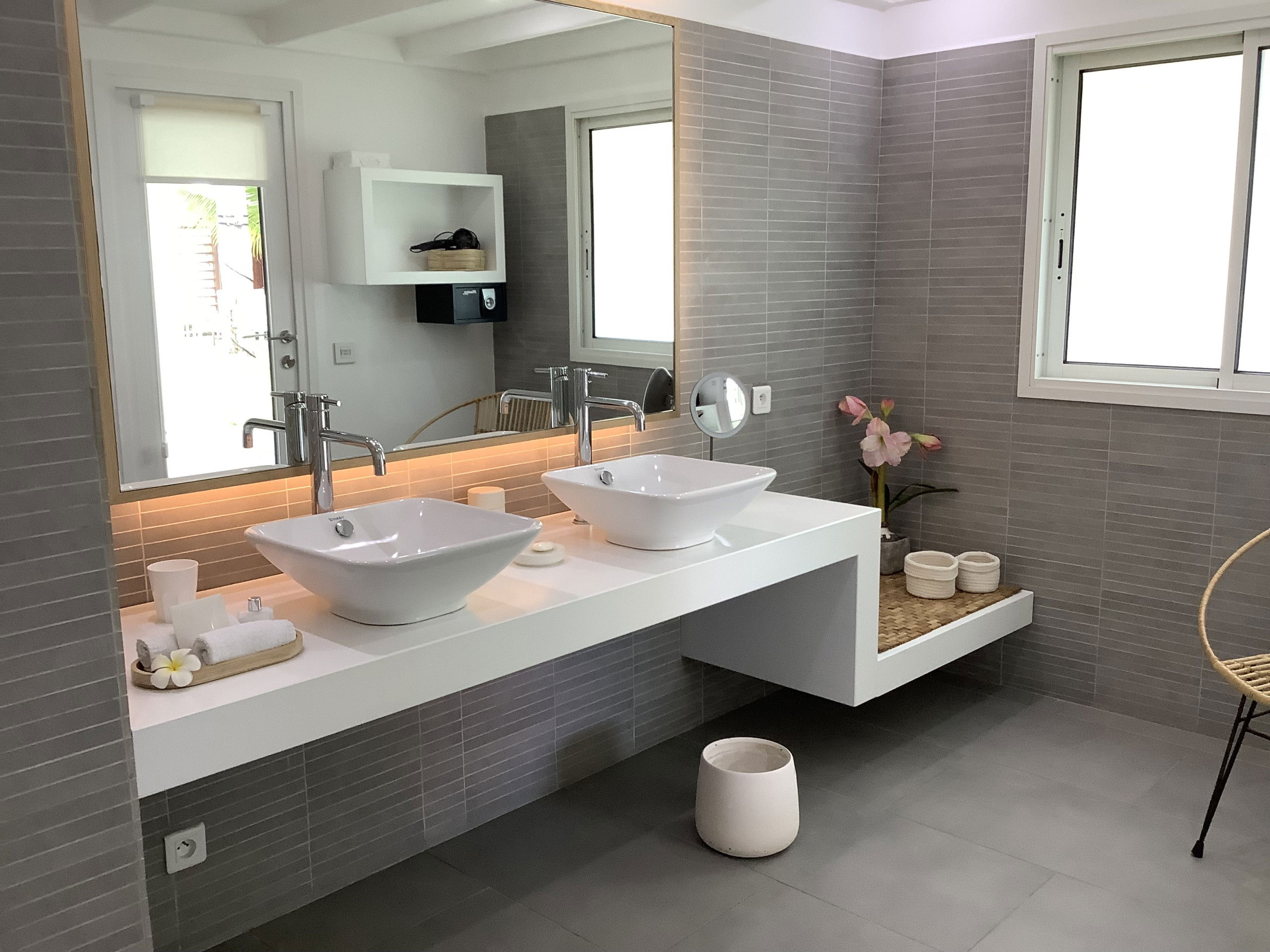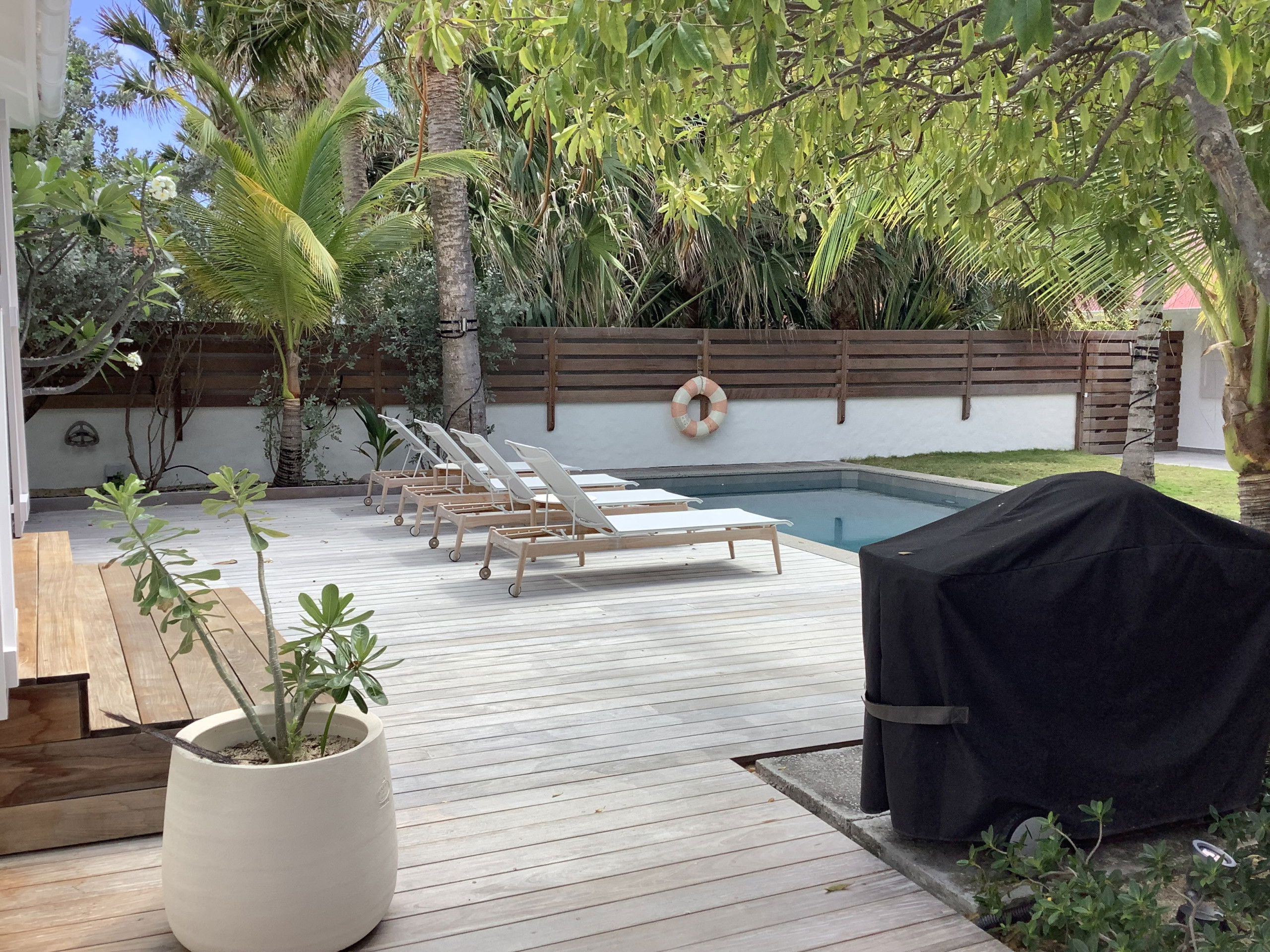 Les chambres indépendantes sont situées dans deux bungalows nichés au coeur d'un jardin tropical. A l'extérieur une grande terrasse ou se trouve la piscine privée vous promet de beaux moments en famille ou entre amis en savourant un bon BBQ.