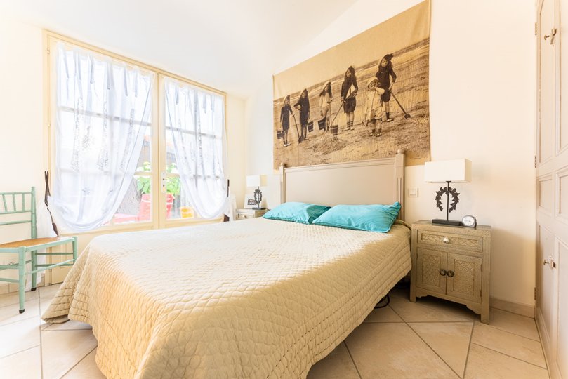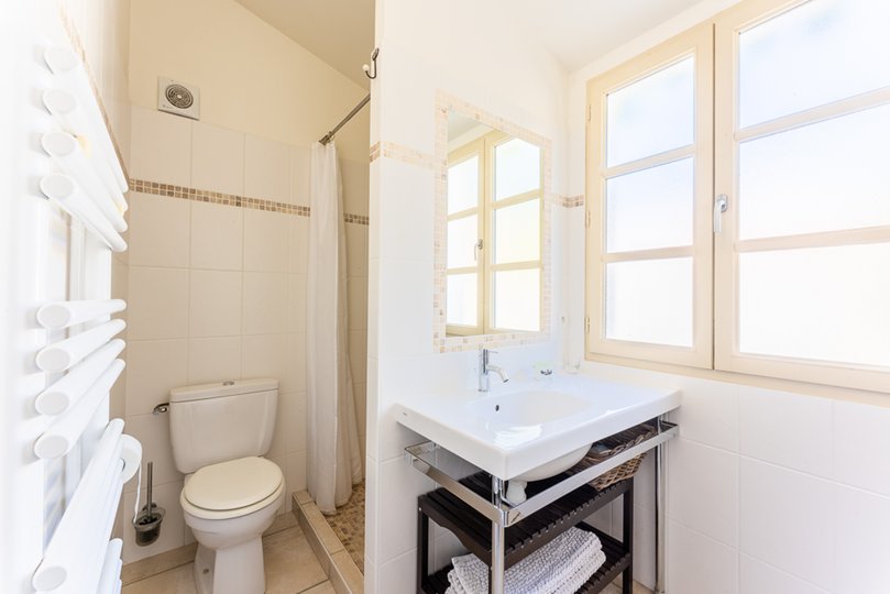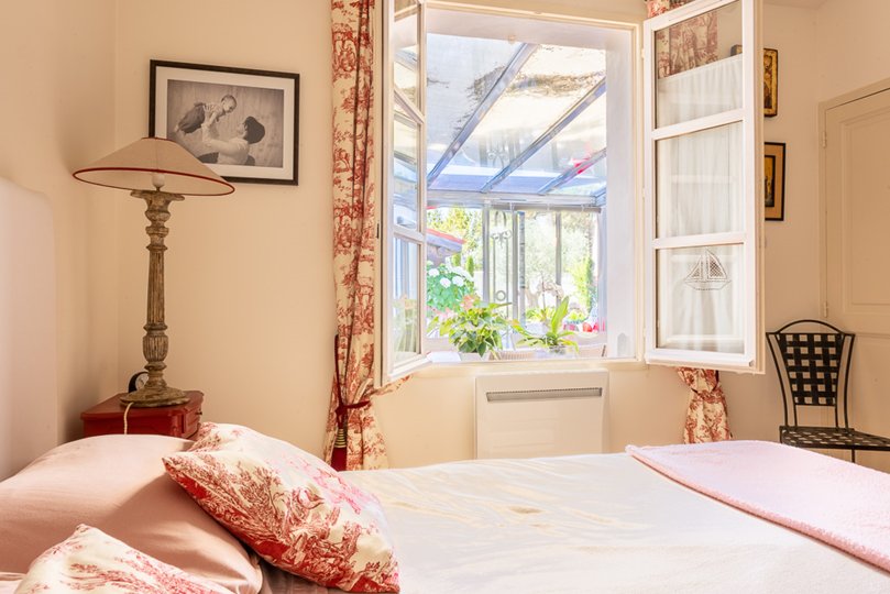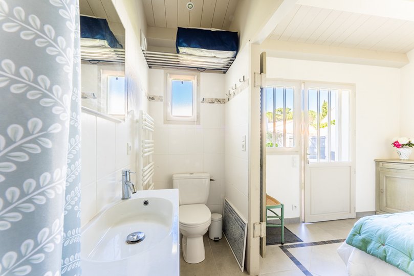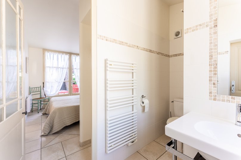 La maison dispose de 3 chambres: une chambre parentale en suite (salle d'eau) avec accès sur l'extérieur, une chambre double avec fenêtre sur la véranda avec accès à une salle de bain indépendante et une troisième chambre double "en suite" dans l'annexe avec salle d'eau