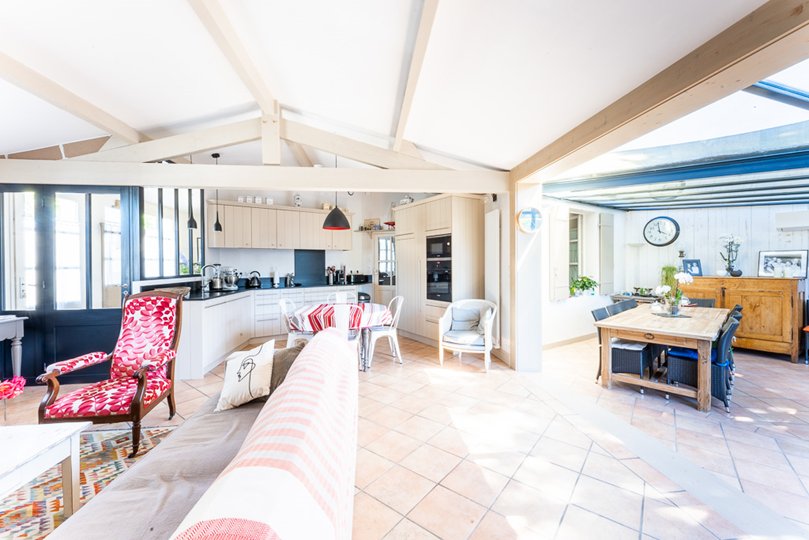 Vous apprécierez le grand séjour avec le coin salon et la cuisine ouverte sur la salle à manger.