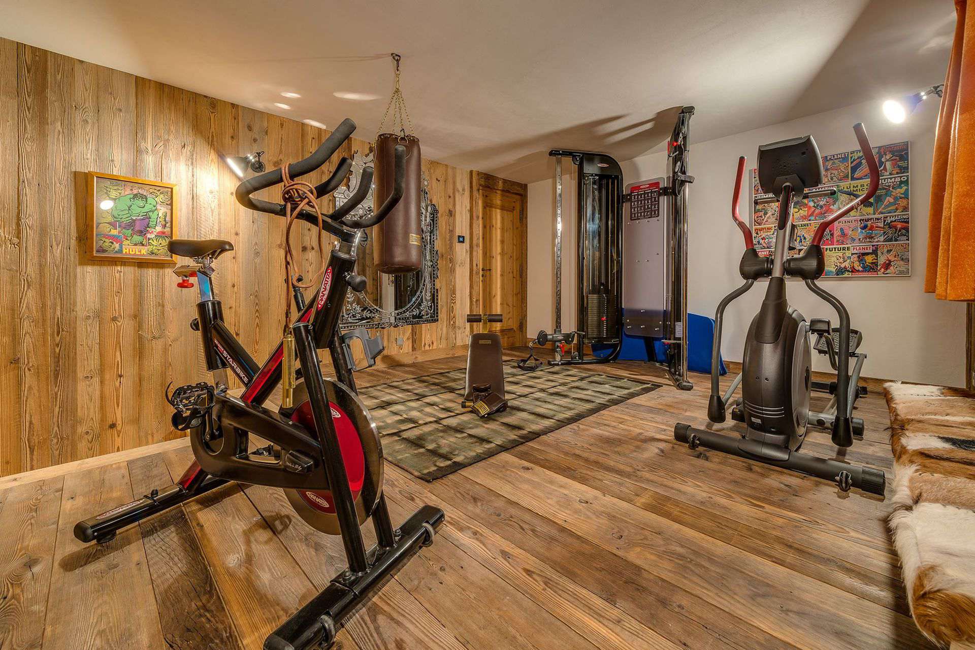 Mur d'escalade, salle de gym (avec TV)