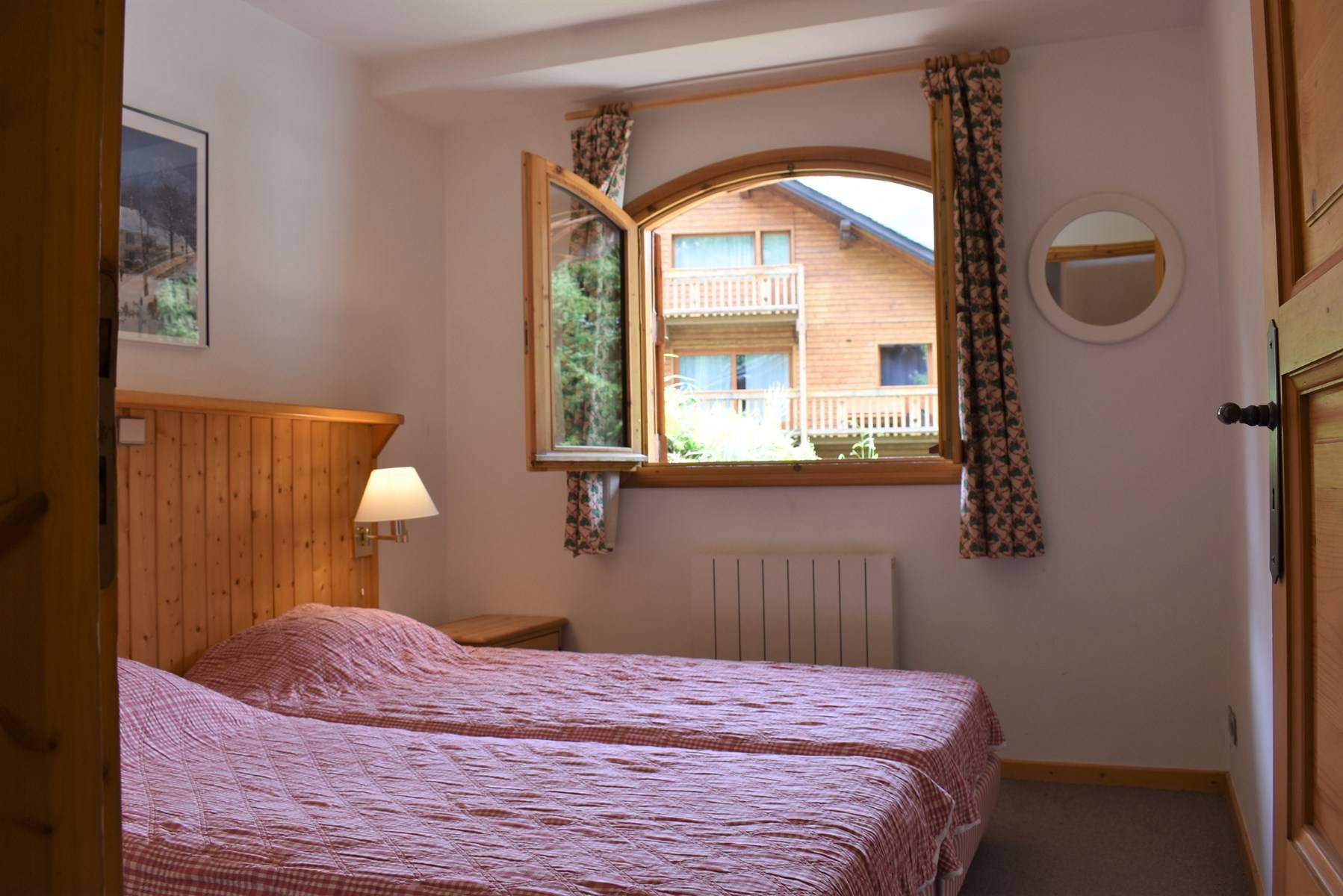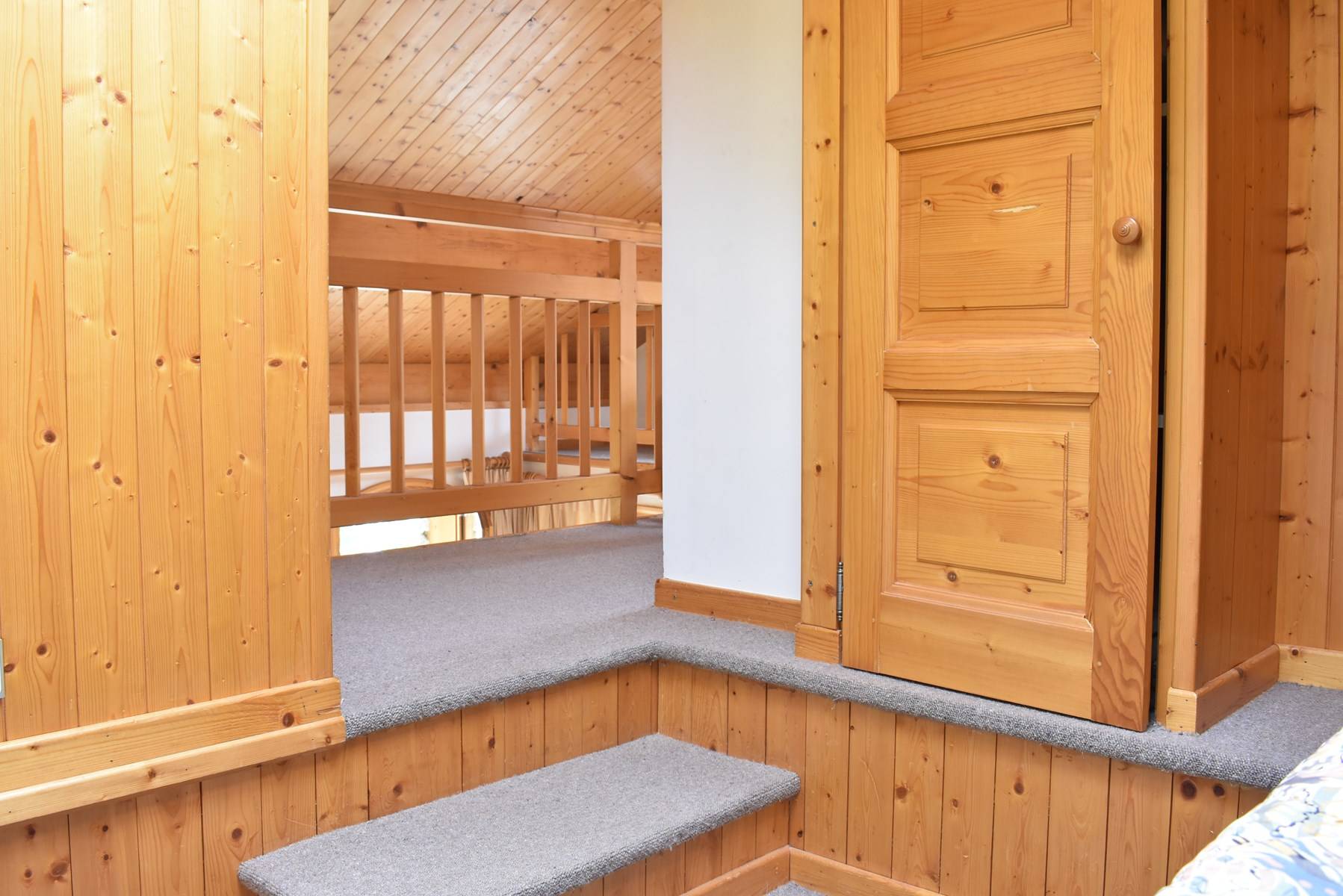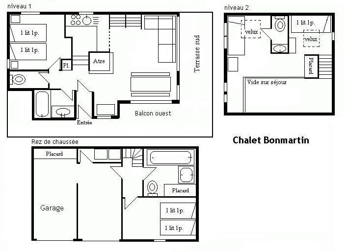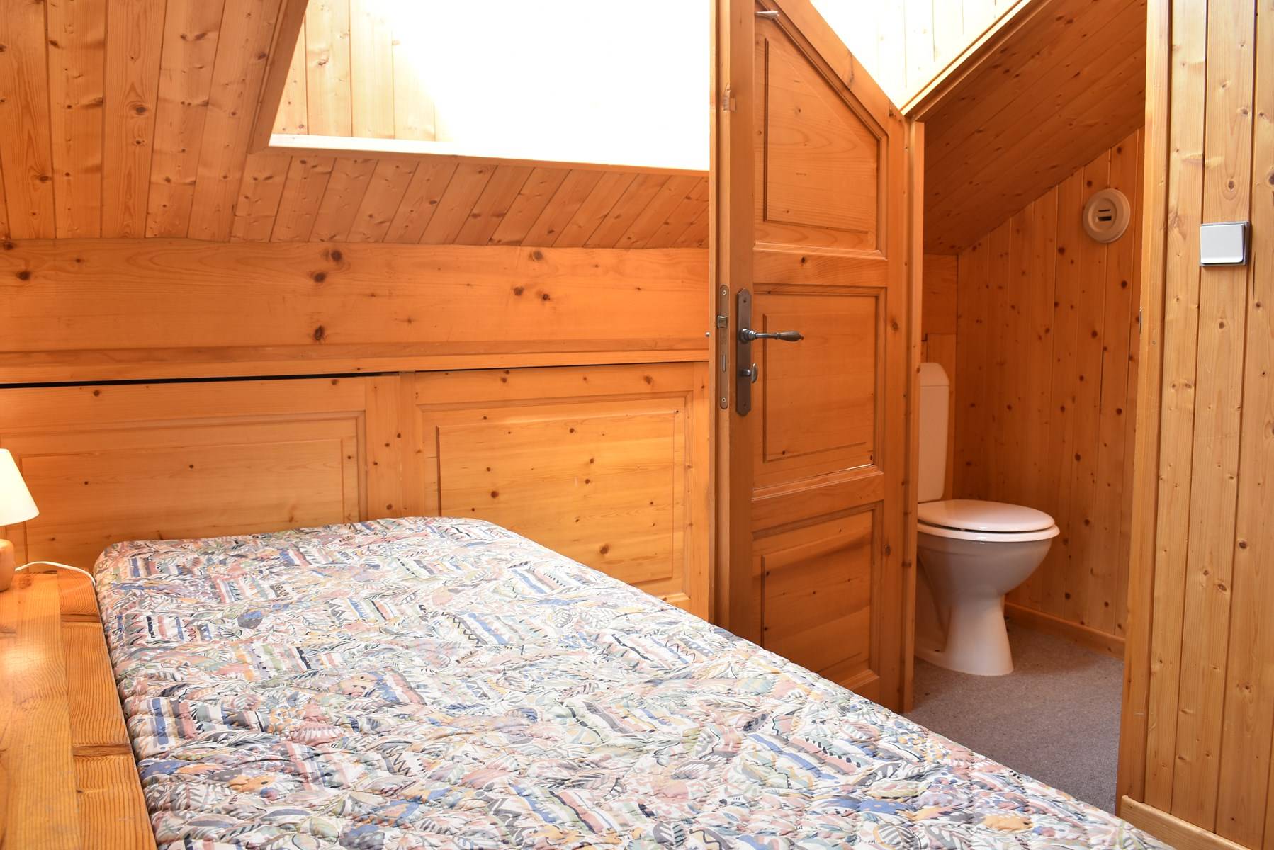 Au RDC, 1 chambre 2 lits 1 personne, 1 salle de bain avec WC, un garage fermé et une autre pièce dans le garage en guise de casier à skis.