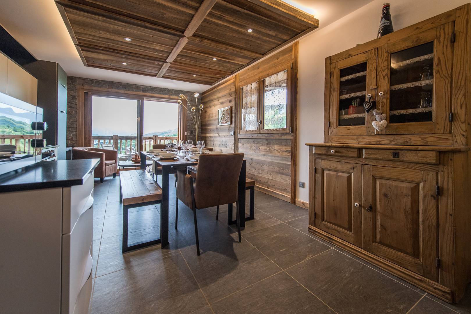 Vaste appartement en vieux bois sur les pistes, en rez de jardin, avec une...