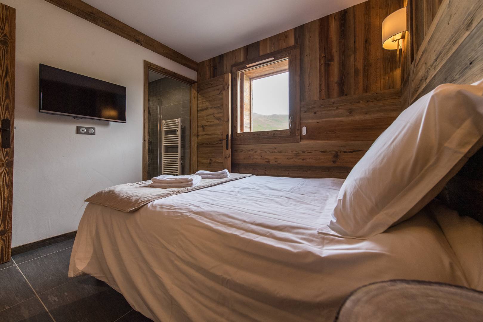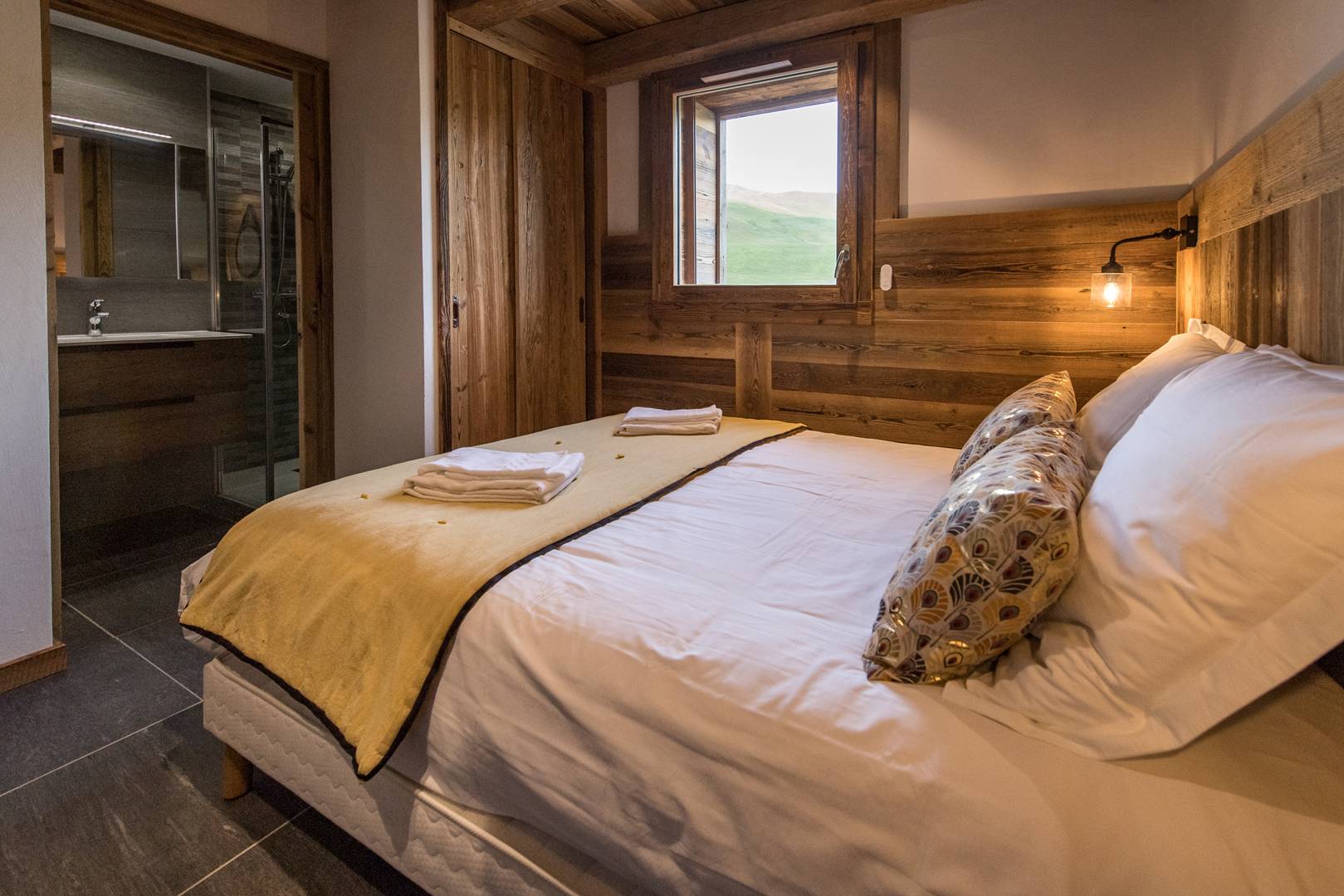 L’appartement est composé d'une pièce de vie ouvrant sur un balcon et sur la sublime vue des Aiguilles d'Arves. La pièce de vie propose un coin salon - salle à manger et une cuisine équipée. Une première chambre avec sa propre salle d’eau est équipée d’un lit en 160. La deuxième chambre propose un lit en 140, une salle d'eau privative et une TV. Un WC indépendant avec lave linge et sèche linge complète cet étage.