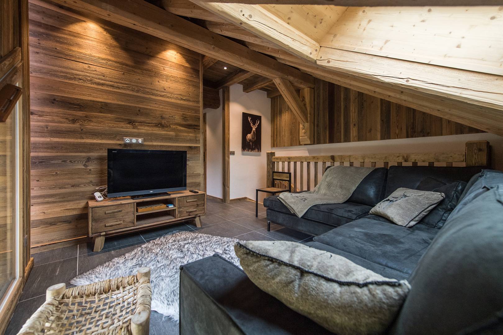 Cet appartement de 105m² au sol et 85m² loi carrez propose une décoration chaleureuse en vieux bois. L'orientation plein sud permet de bénéficier d'une grande luminosité.