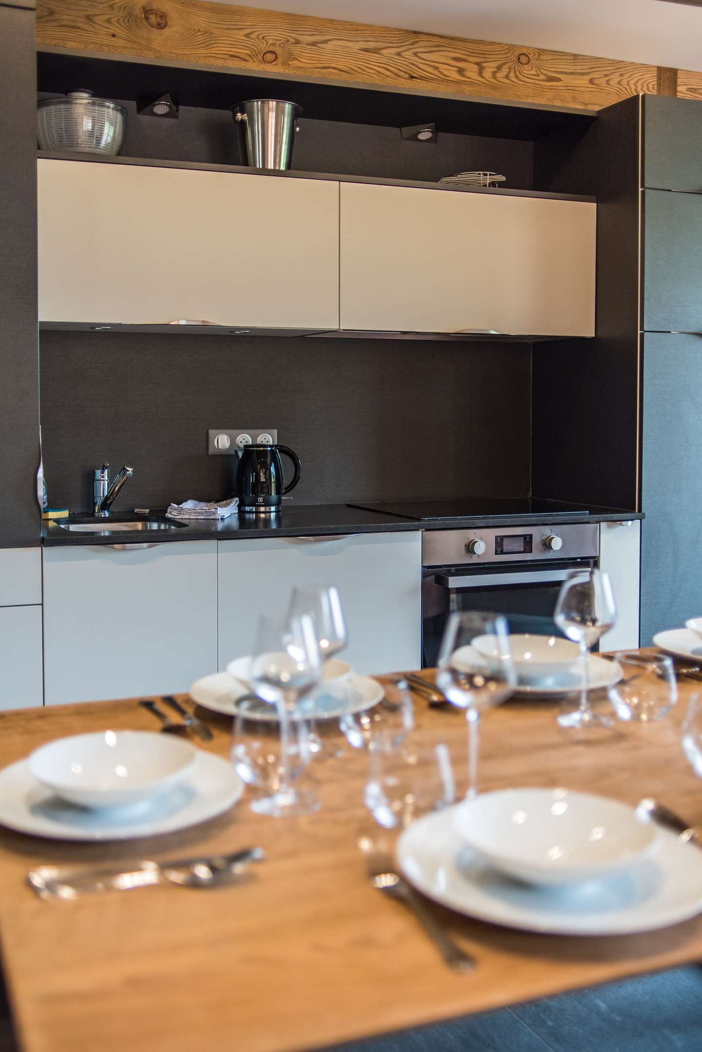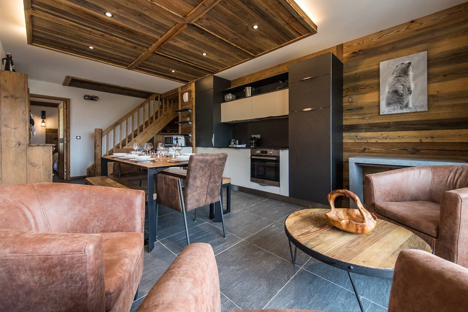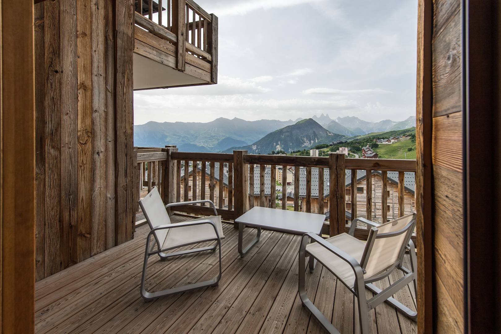 Tous les appartements de cette résidence neuve sont orientés plein sud et offrent une vue panoramique sur les Aiguilles d’Arves et la Meije.