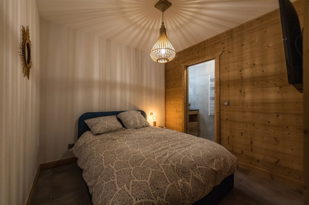 L’appartement est composé d'une pièce de vie ouvrant sur une terrasse et sur la sublime vue des Aiguilles d'Arves. La pièce de vie propose un coin salon avec canapé convertible - salle à manger et une cuisine équipée. Une première chambre avec sa propre salle d’eau est équipée d’un lit en 140. La deuxième chambre propose un lit en 160 et partage une salle d’eau avec le coin nuit et son lit gigogne (couchage en 160 une fois déplié). Enfin, un WC indépendant complète ce bien.