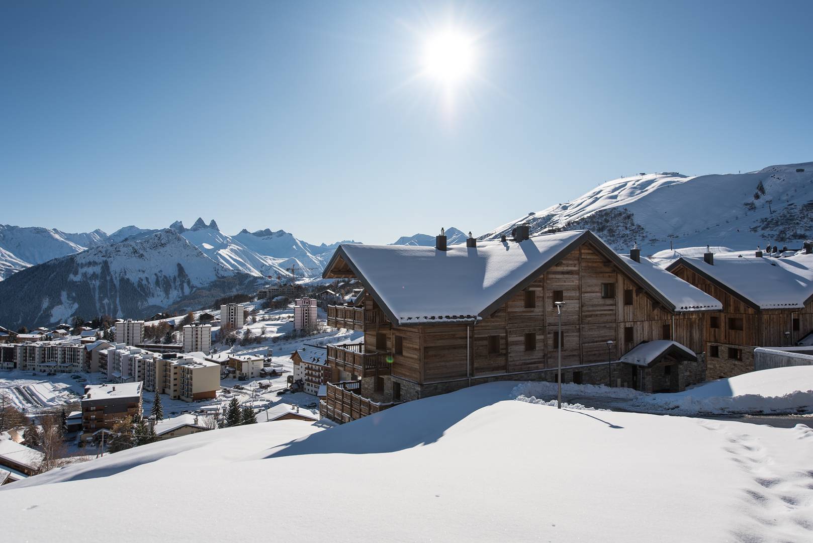 La résidence l’Odyssée se trouve sur les hauteurs de la station et sur la piste « Les Retenues » qui permet de rejoindre le front de neige et les principales remontées mécaniques en quelques secondes. Arrivée et départ à ski au pied de la résidence.