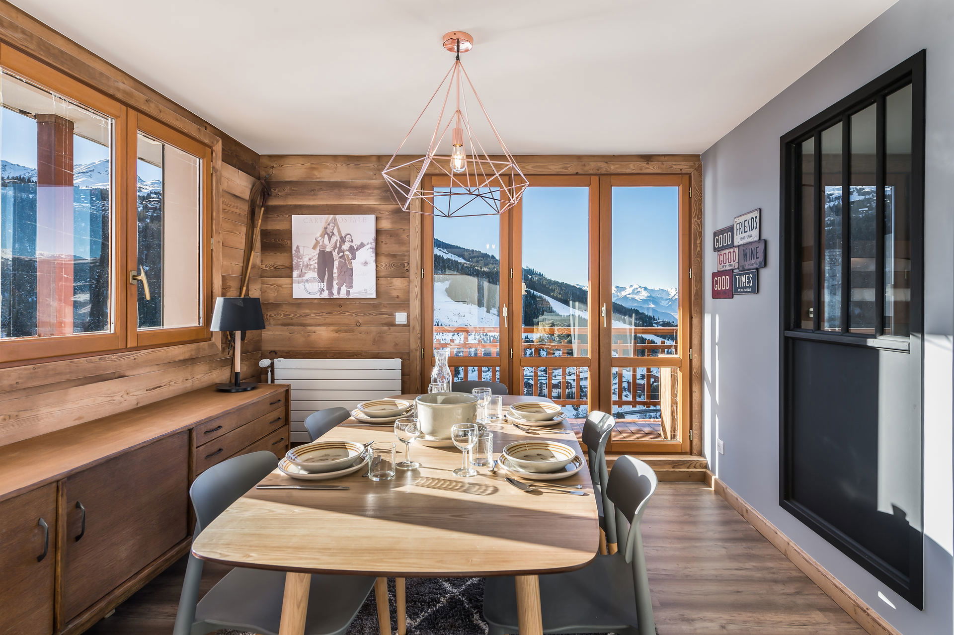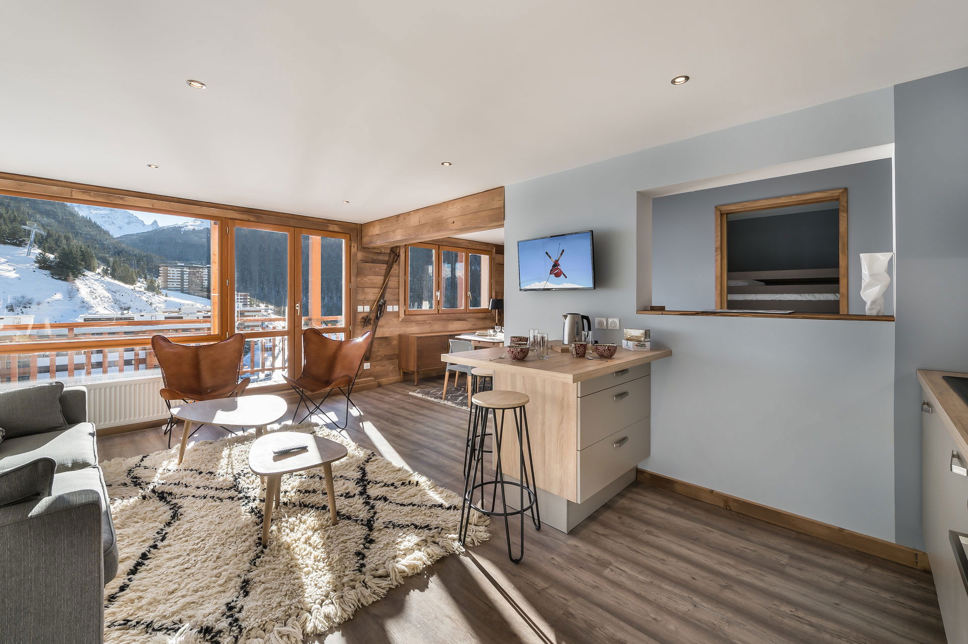 Cet appartement bénéficie d'une superbe vue sur le domaine skiable, les sommets et la vallée et d'un accès direct aux pistes à partir du 7ème étage.