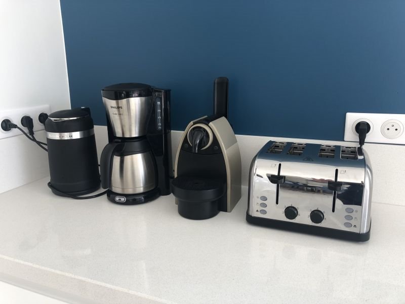 Cuisine très bien équipée avec four, micro-ondes, chauffe-assiettes, lave-vaisselle, réfrigérateur. Une arrière-cuisine avec réfrigérateur-congélateur, lave-linge, sèche-linge.