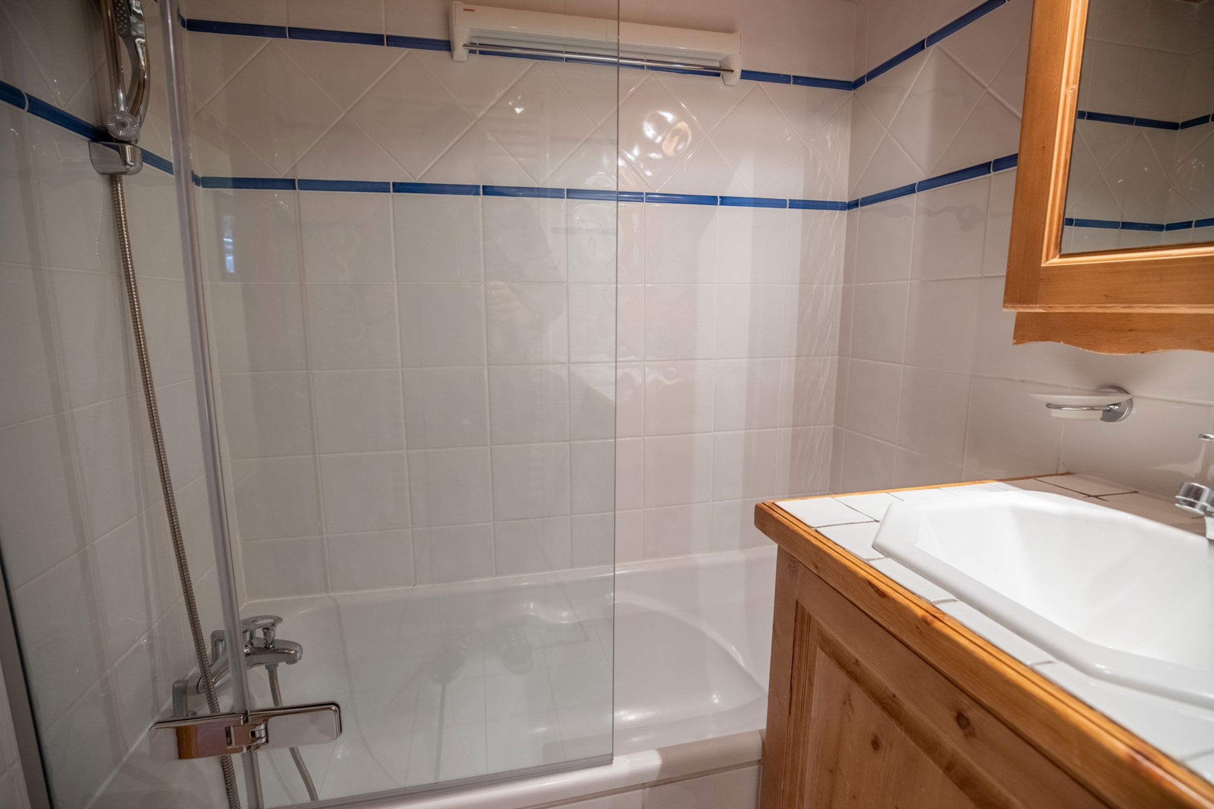 Une deuxième salle de bain avec baignoire, un WC séparé se trouve dans l'entrée.