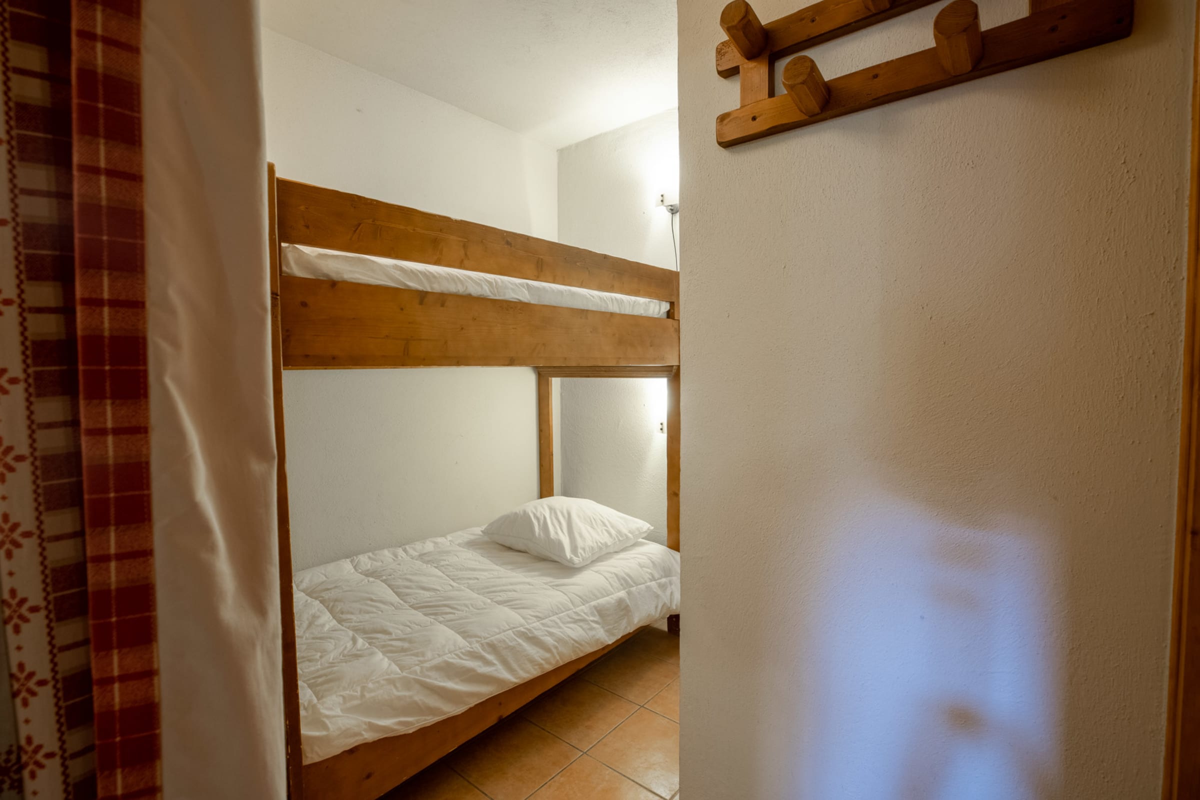 Vous trouverez une chambre avec un lit double en 180cm et sa salle de bain (douche). Une deuxième chambre également avec un lit double en 180cm. La troisième chambre est avec deux lits simple en lit superposés.