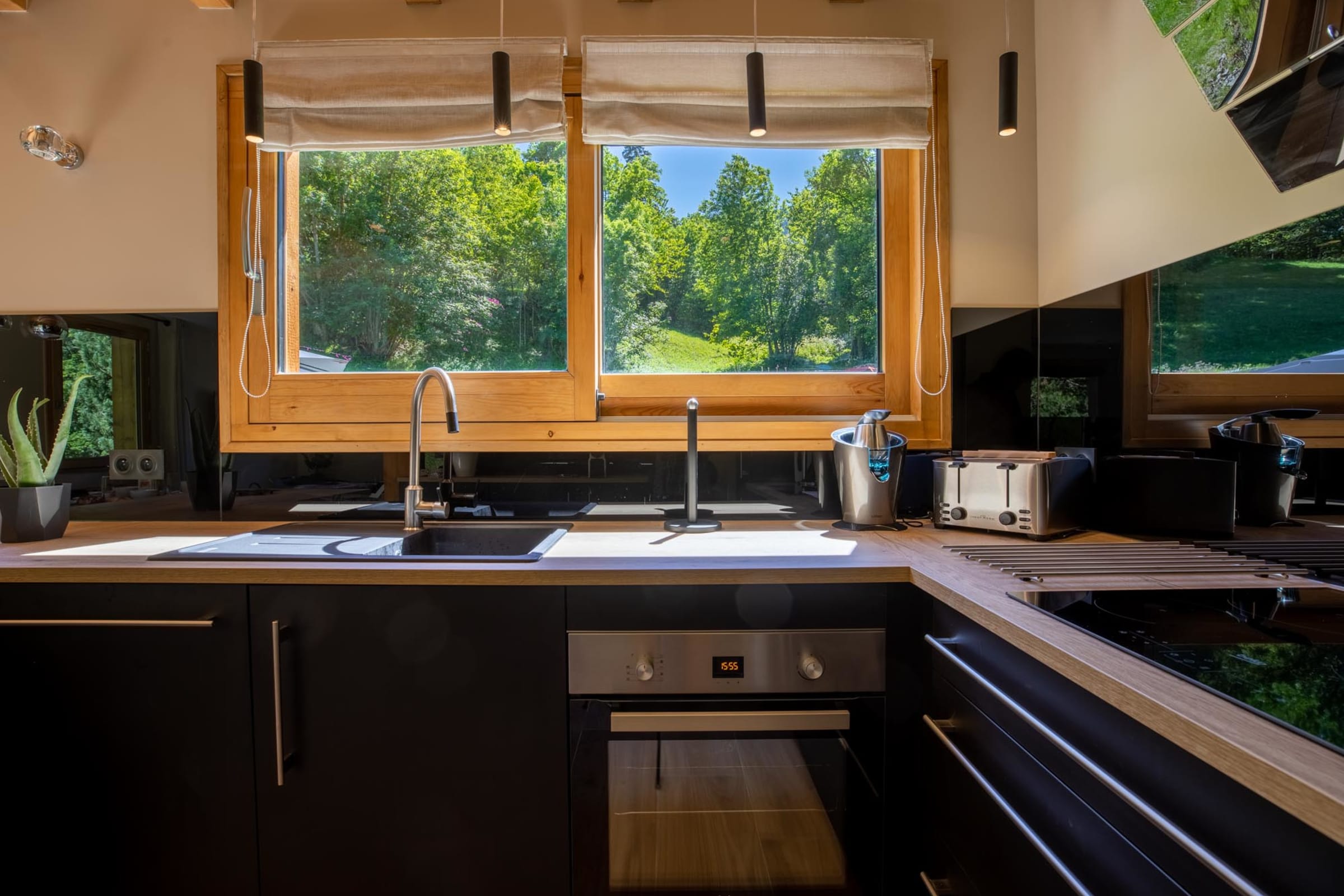 - une cuisine équipée avec lave vaisselle, four, grand réfrigérateur, congélateur, toaster, bouilloire, machine à café Nespresso...