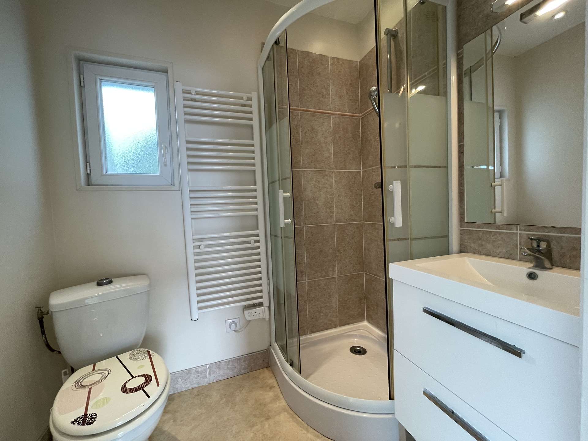 Studio indépendant, avec une chambre (avec convertible) ouvrant sur une terrasse, un kitchenette avec une plaque électrique, un micro-ondes, une salle d'eau avec vasque, un WC, une douche.