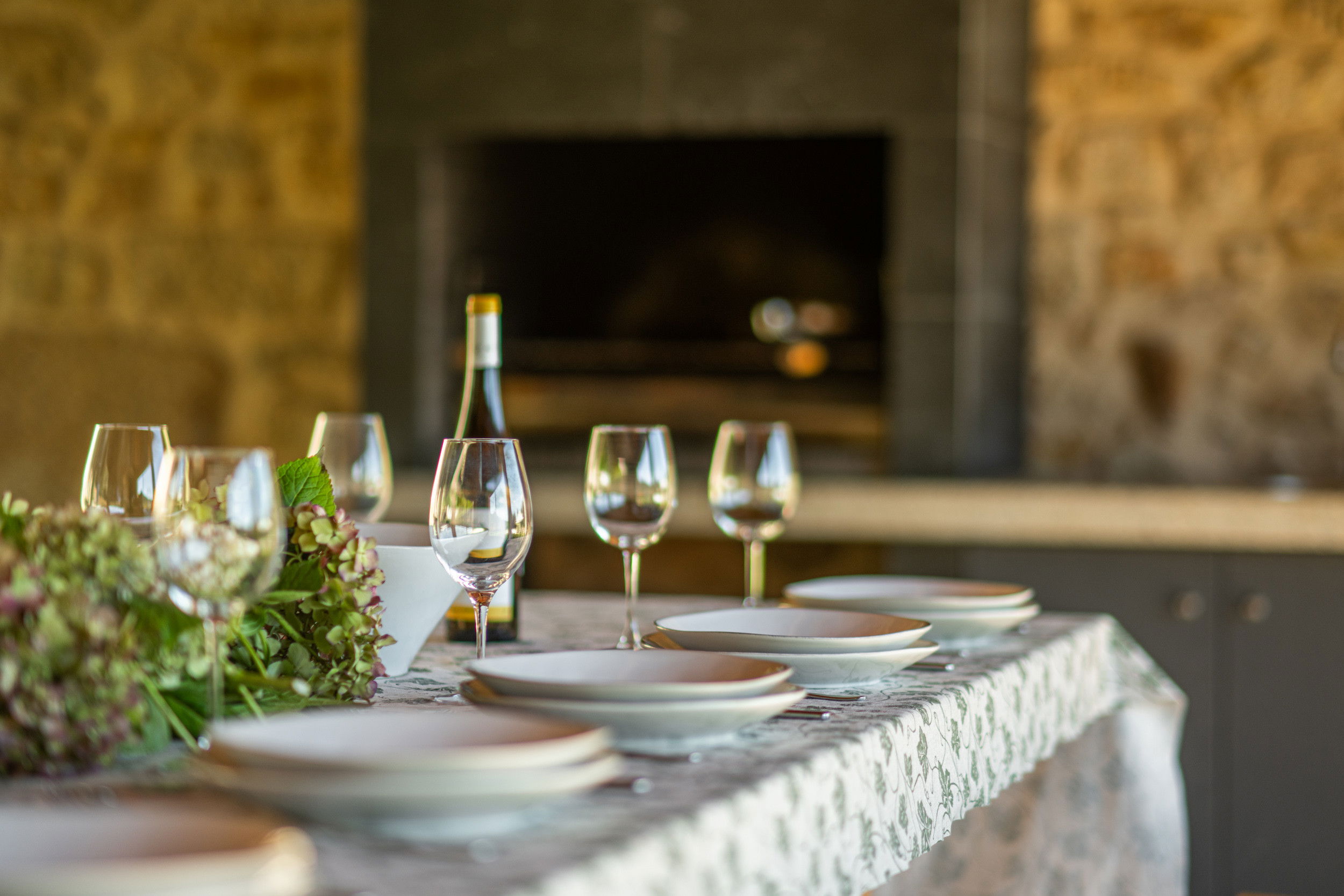 Des terrasses spacieuses et une pelouse largement étendue où les invités peuvent profiter des belles vues sur les montagnes et le vignoble environnant. Terrasse avec barbecue, idéale pour les repas en plein air.