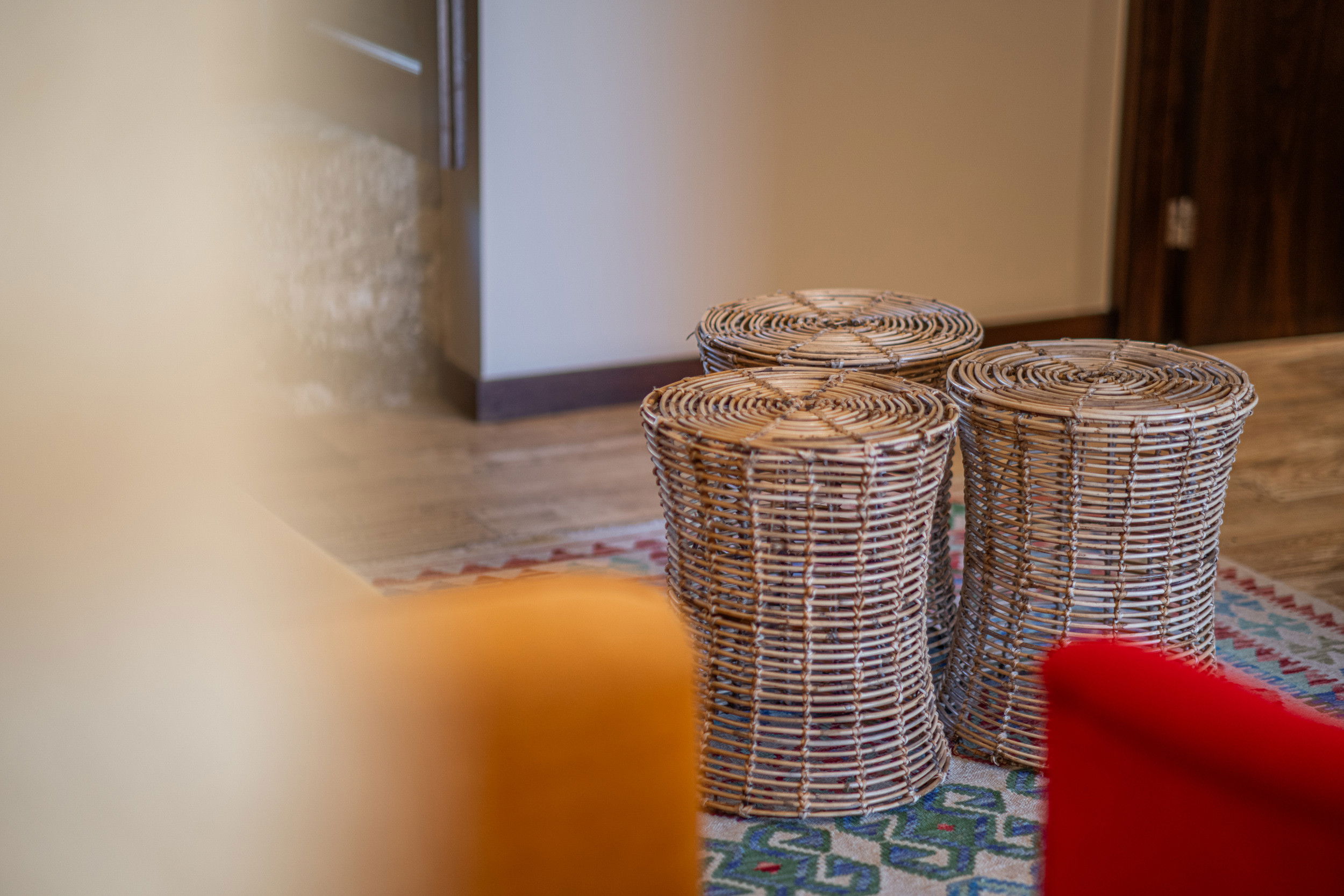 Étage inférieur : Salon/salle à manger ouvert avec des sièges confortables et une cuisine entièrement équipée. Toilettes pour les invités. Chambre double avec salle de douche.
