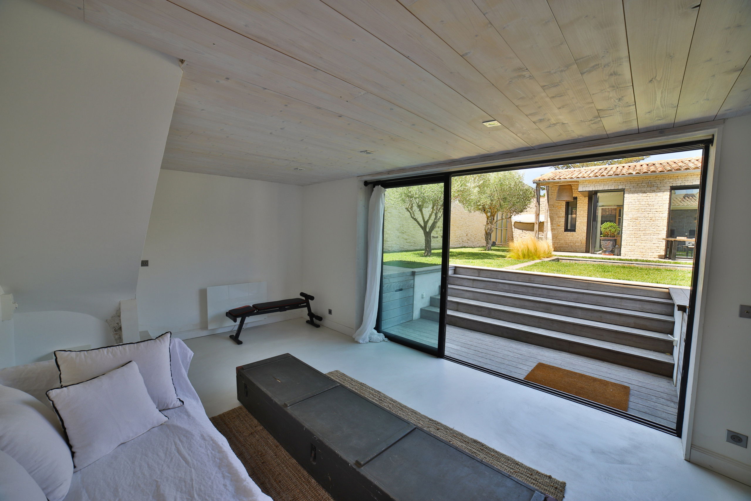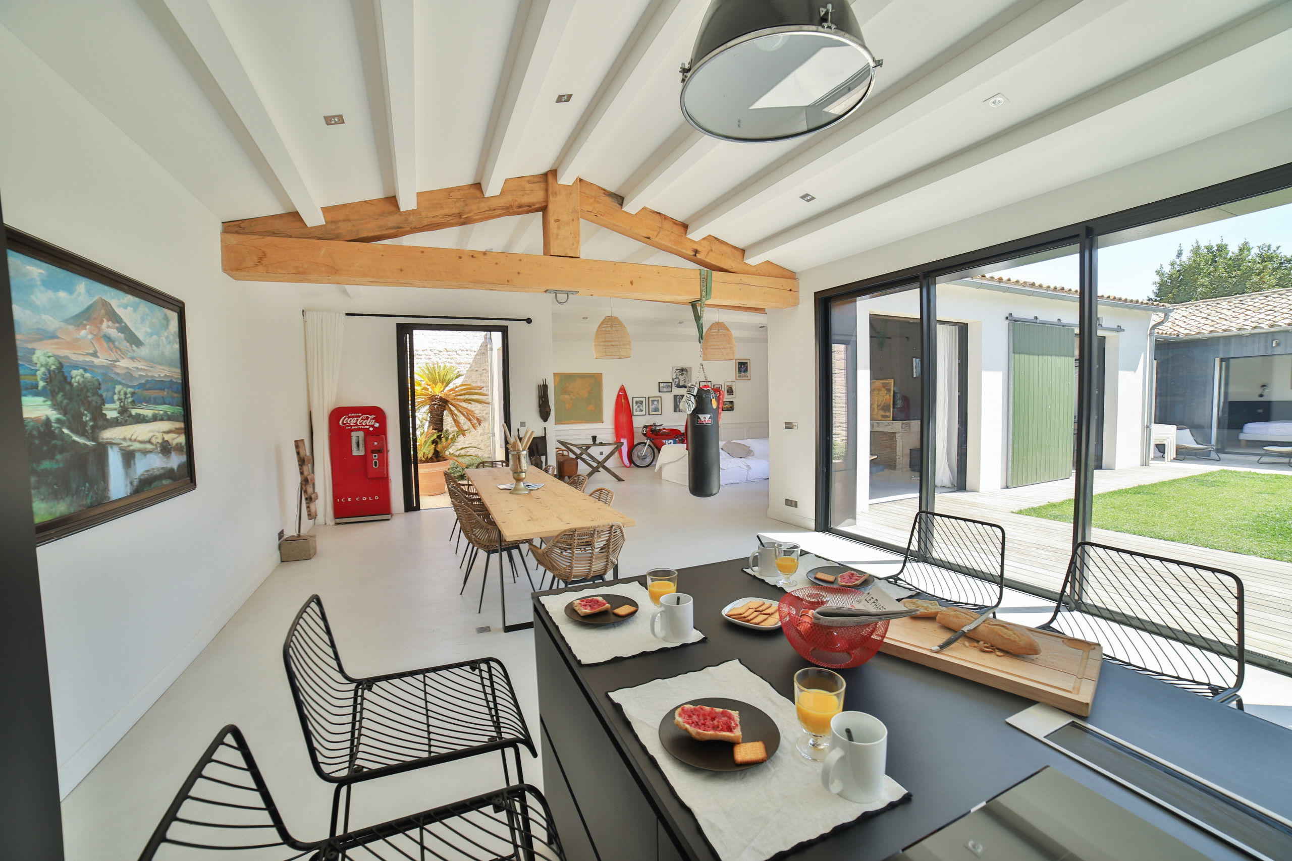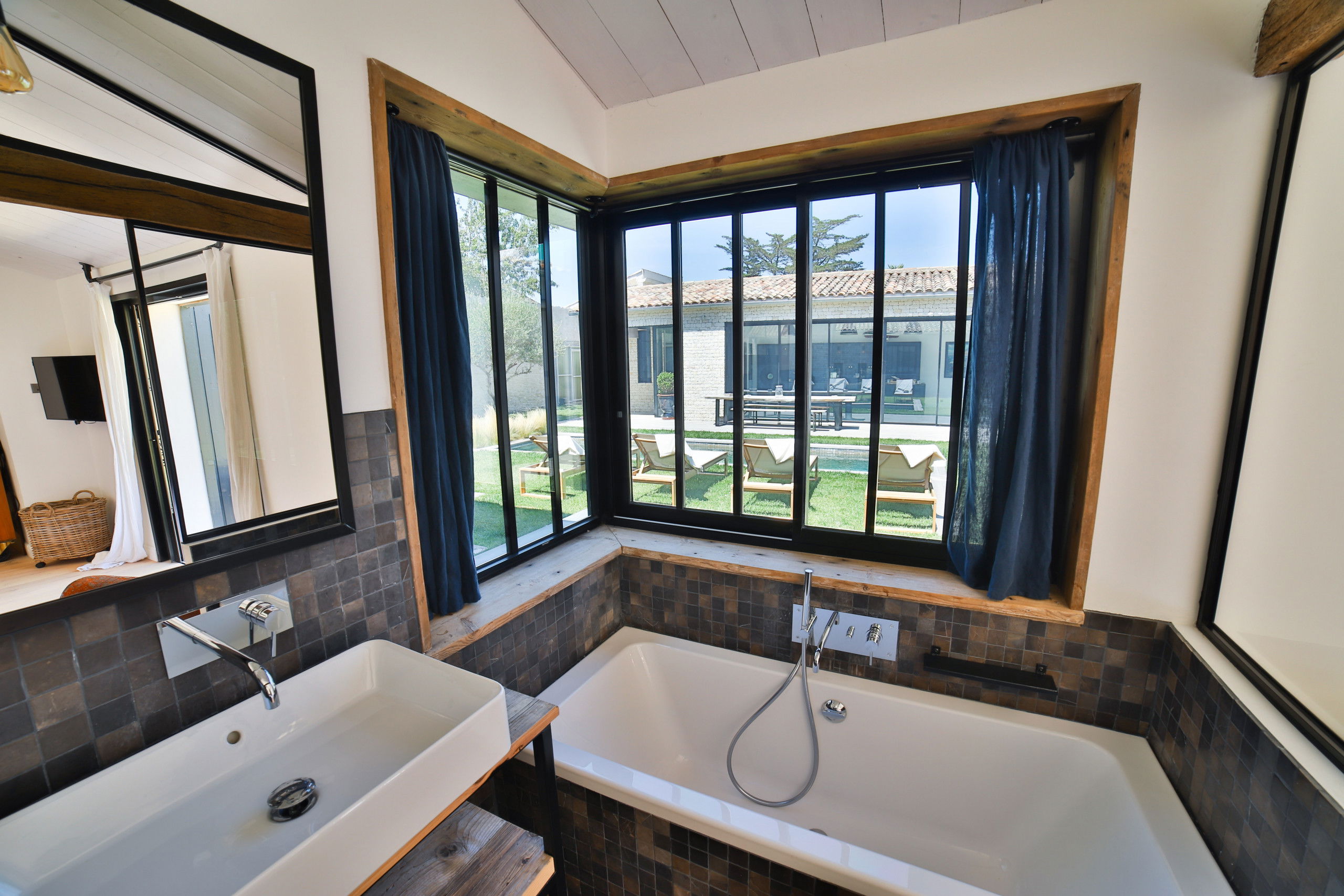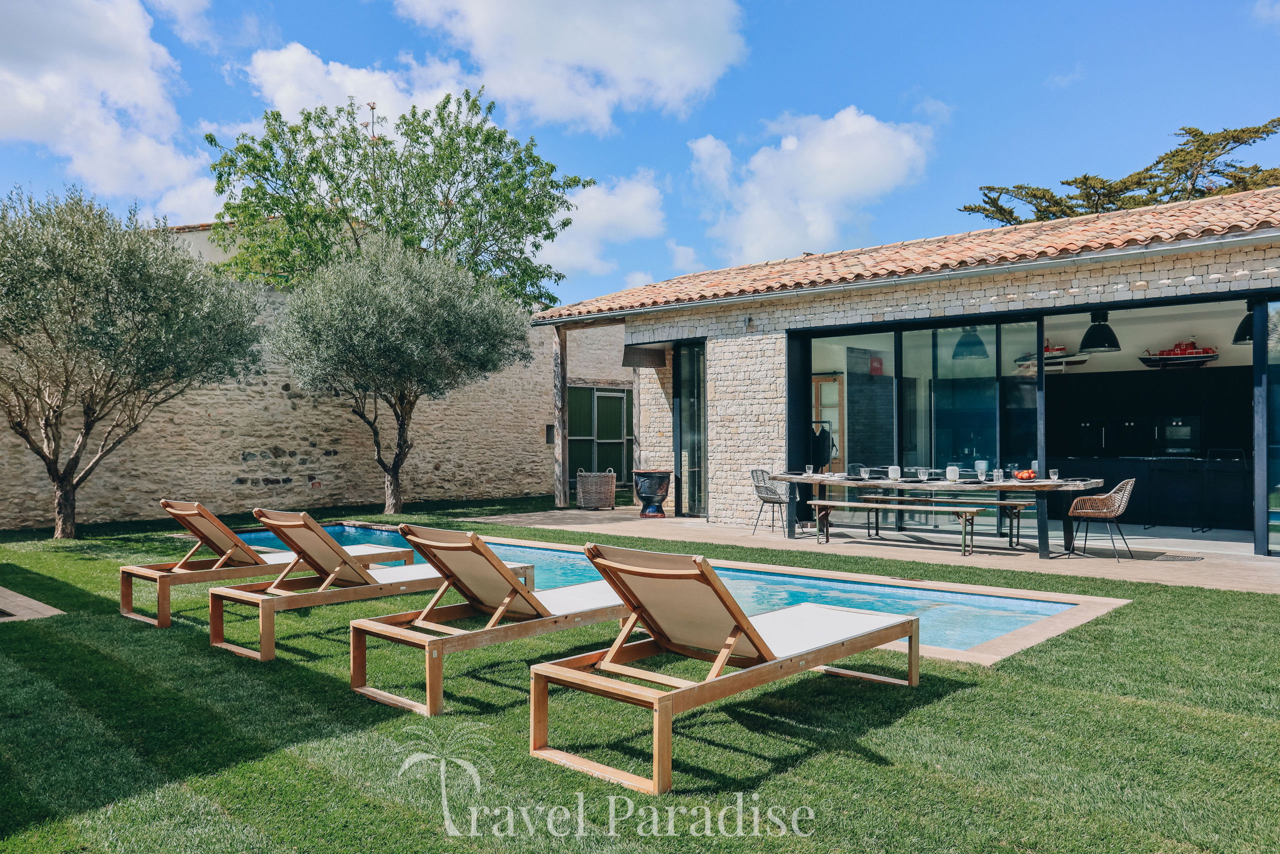 La villa situé sur l'île de Ré à Saint Martin vous séduira pour passer des vacances entre amis ou en famille. Sa grande piscine chauffée en mosaïque et ses espaces de vie entièrement ouverts sur l'extérieur fond de cette demeure un lieu atypique.