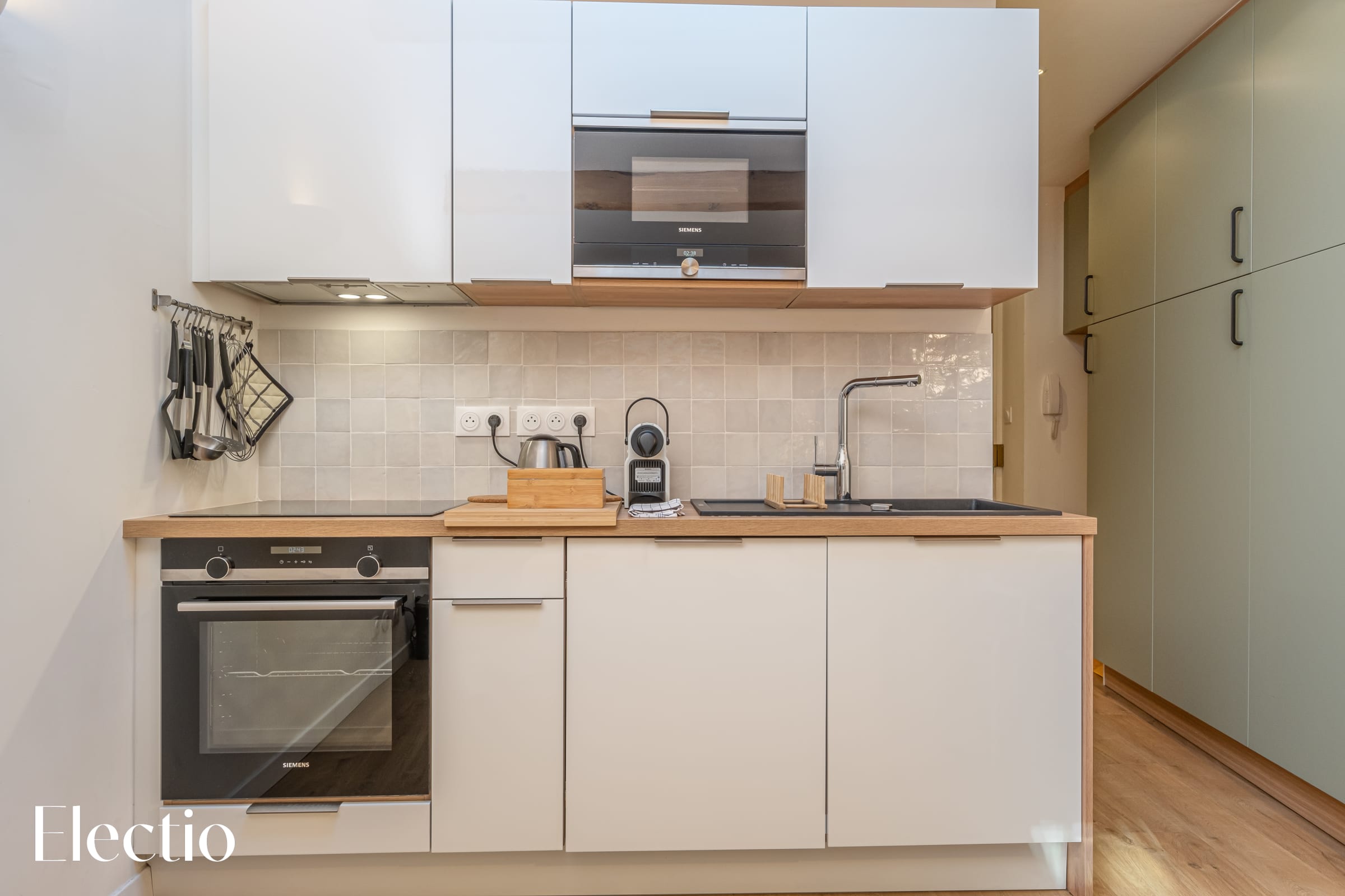 La cuisine est équipée et très fonctionnelle. Elle dispose entre autres d’un four, d’un micro-onde, d'un réfrigérateur et d’une machine à laver. Une machine Nespresso ainsi qu’une bouilloire et un grille-pain sont à votre disposition avec des capsules de cafés et une sélection de thés pour vos moments de pause.