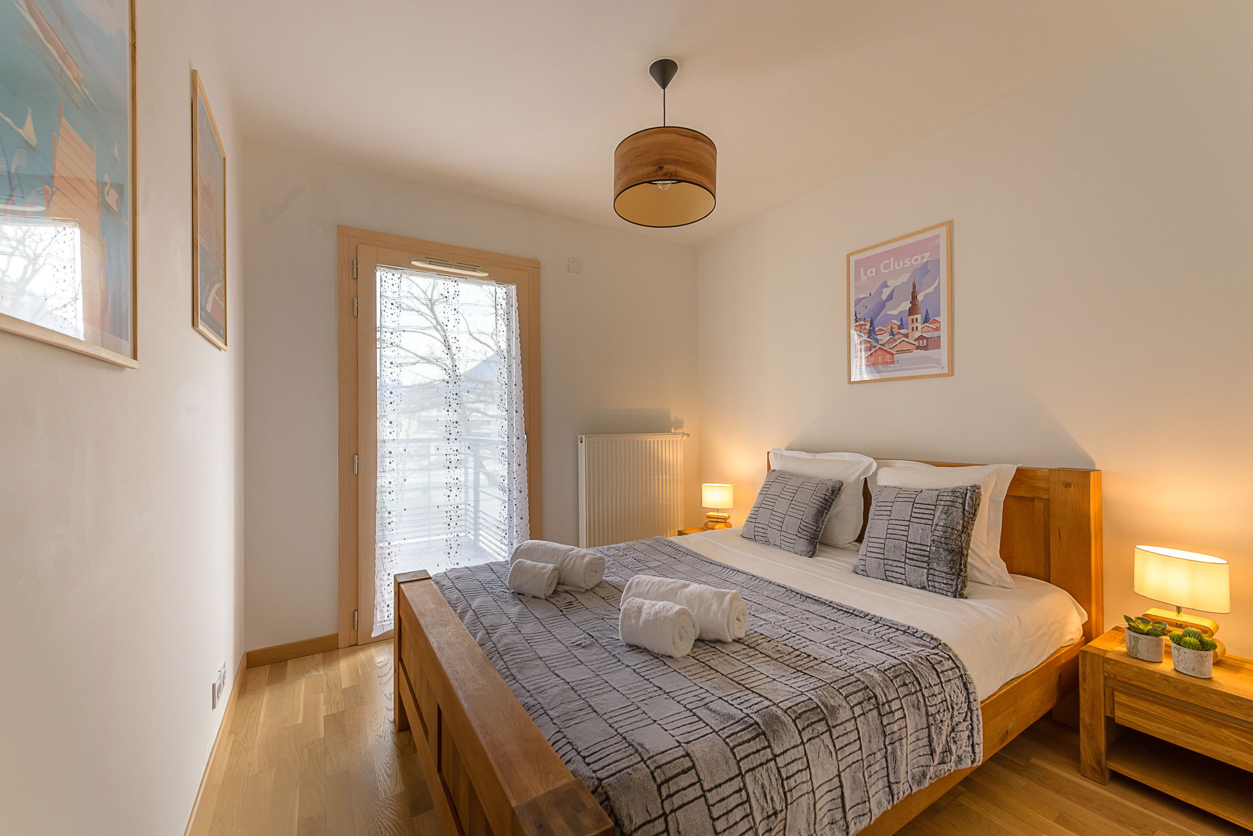 - Chambre n°3 : chambre avec lit double de 140x200cm, équipée d'un placard de deux grandes portes coulissantes