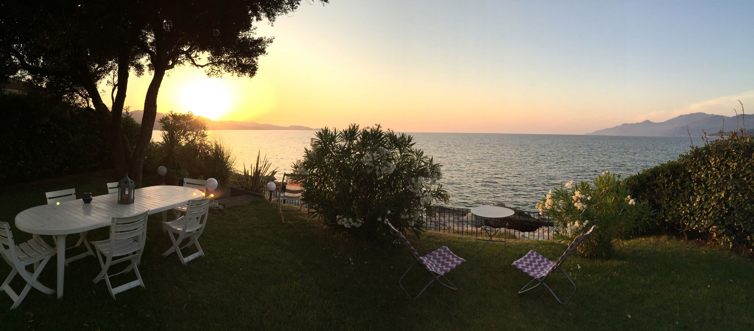 Maison les pieds dans l'eau dans un cadre exceptionnel au coeur d'une résidence privée avec gardien. Cette maison se compose de trois chambres, une cuisine indépendante, un séjour, une salle d'eau et une salle de bain, des toilettes indépendants et une terrasse et jardin privatifs avec vue sur tout le golfe de St Florent. Accès direct à la mer et aux plages de galets. Le centre de Saint Florent et le port de plaisance sont accessibles à pied à 350 mètres. La citadelle se trouve à 3 minutes à pied. Parking privé pour 2 voitures dans la résidence. Tout le linge de maison est fourni et le ménage au départ est inclus.