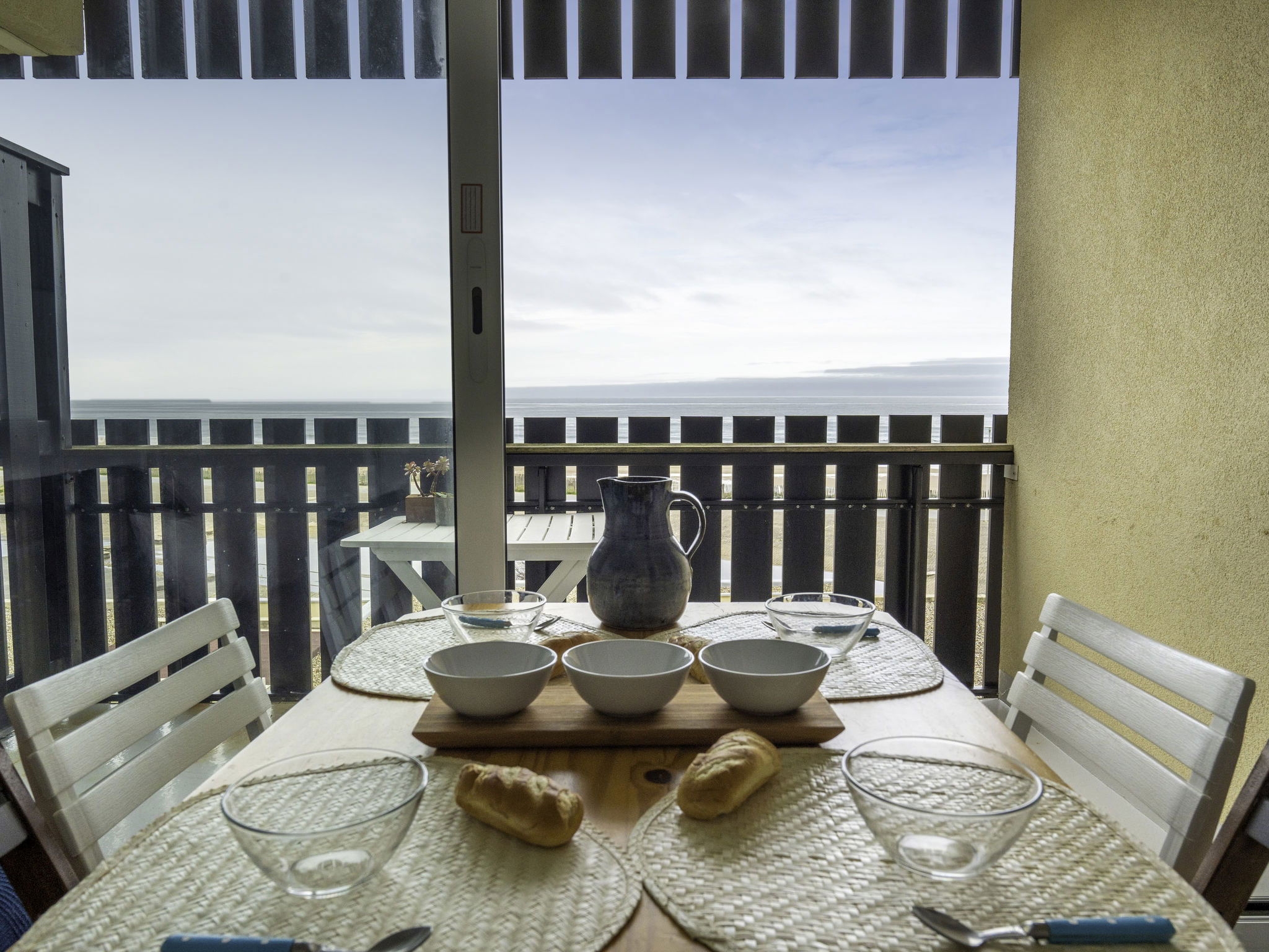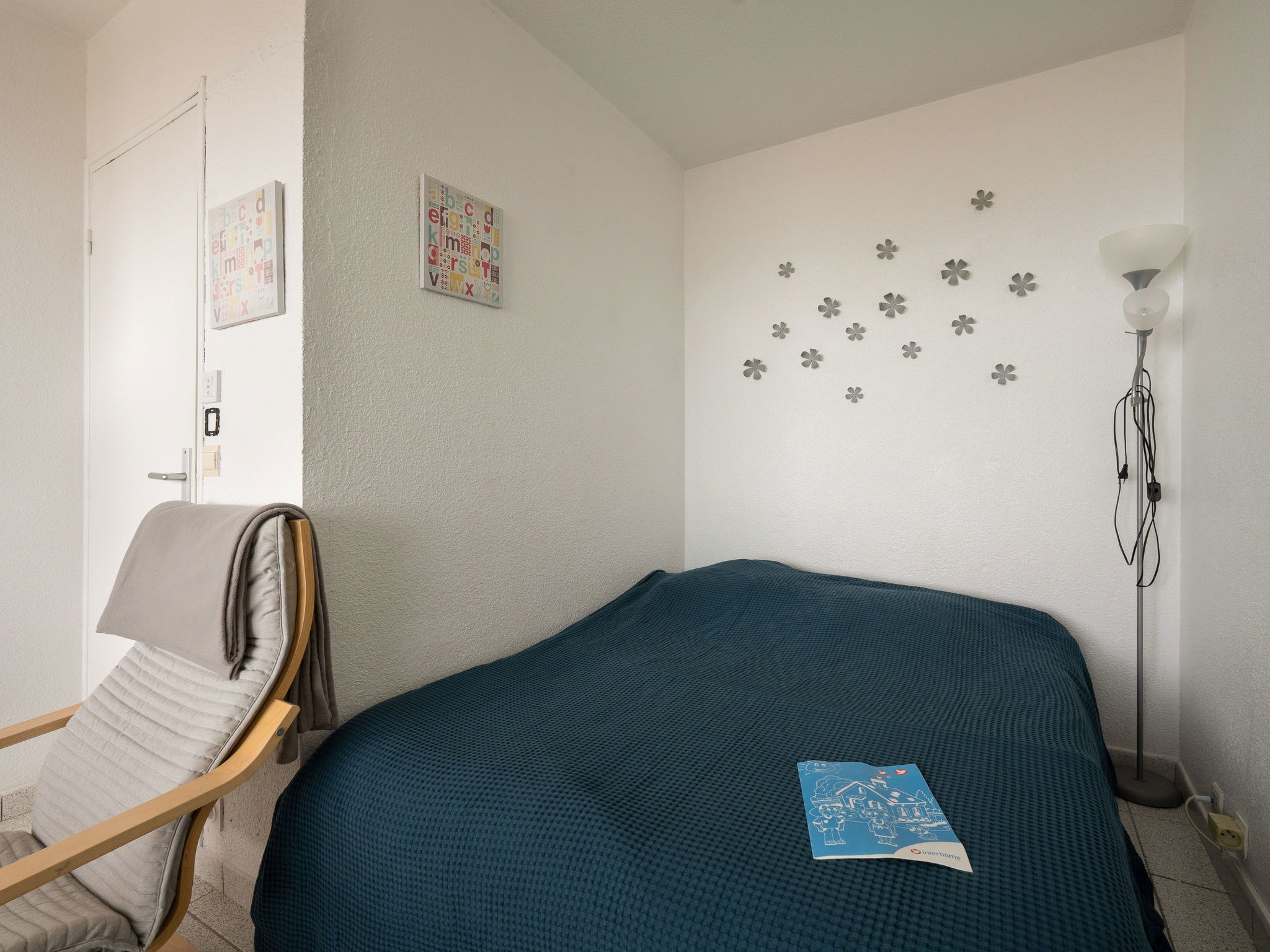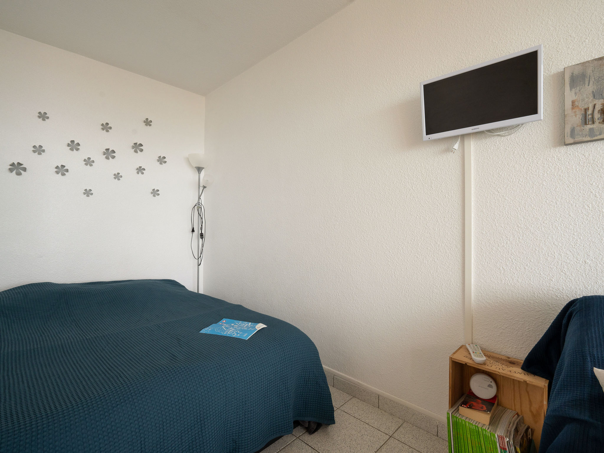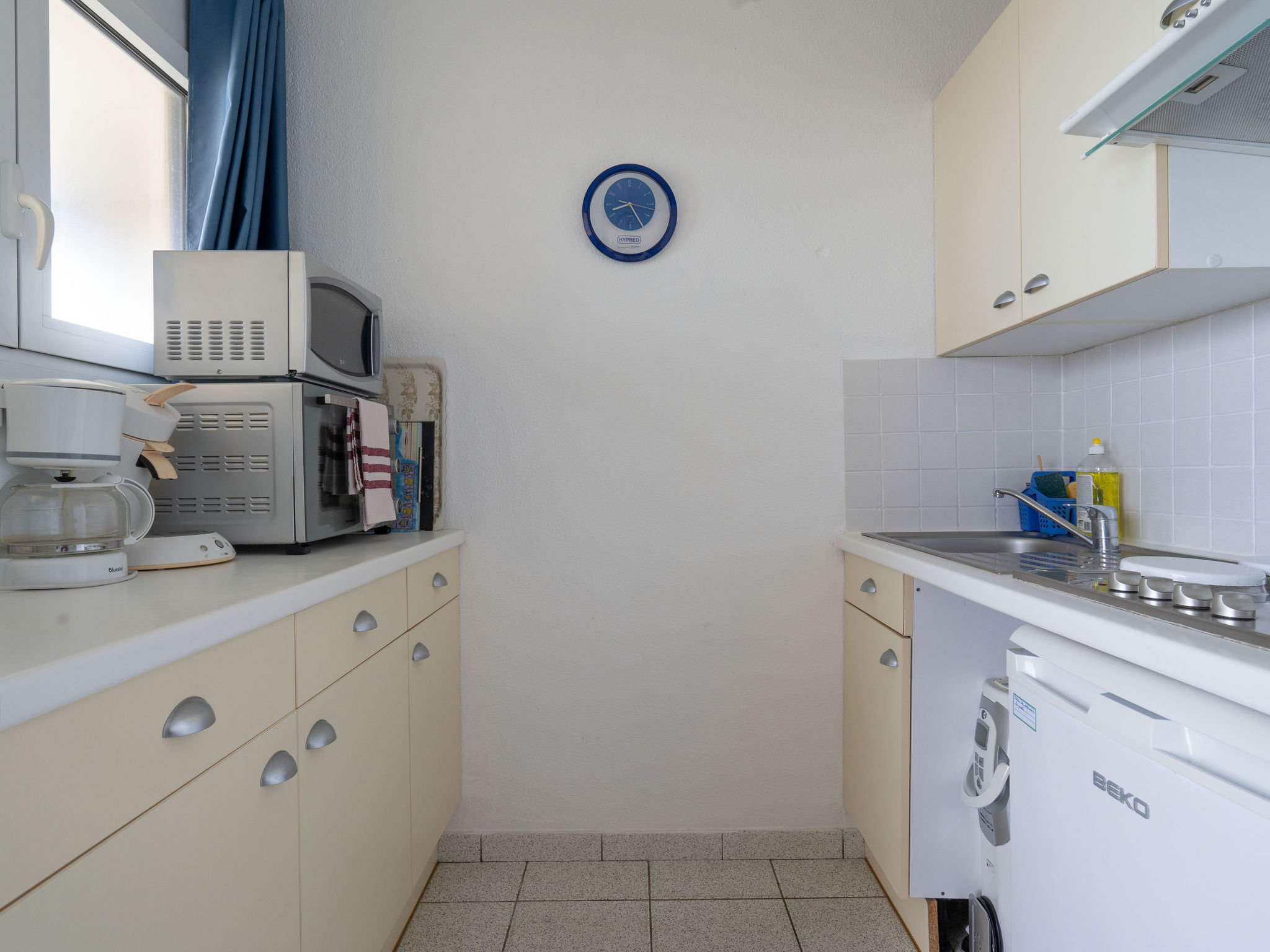 Studio 20 m2 au 1er étage. Séjour/salle à manger avec TV (écran plat). Sortie sur le balcon. Alcôve avec 1 grand-lit (140 cm, longueur 190 cm). Cuisine (4 plaques de cuisson, four, grille-pain, bouilloire électrique, micro-ondes, cafetière électrique, Capsules pour machine à café (Senseo)). Douche/WC. Chauffage. Balcon 3 m2, situation ouest. Mobilier de balcon, chaises longues (1). Superbe vue sur l'océan. A disposition: lave-linge. Internet (Connexion WIFI, en sus). Place de parking No 71. Veuillez noter: logement non-fumeur. Détecteur de fumée. Au lieu d'une chambre fermée, des espaces de couchage sont situés dans une zone ouverte (galerie, alcôve...). Annonce d'un particulier (art 155, IV du CGI).