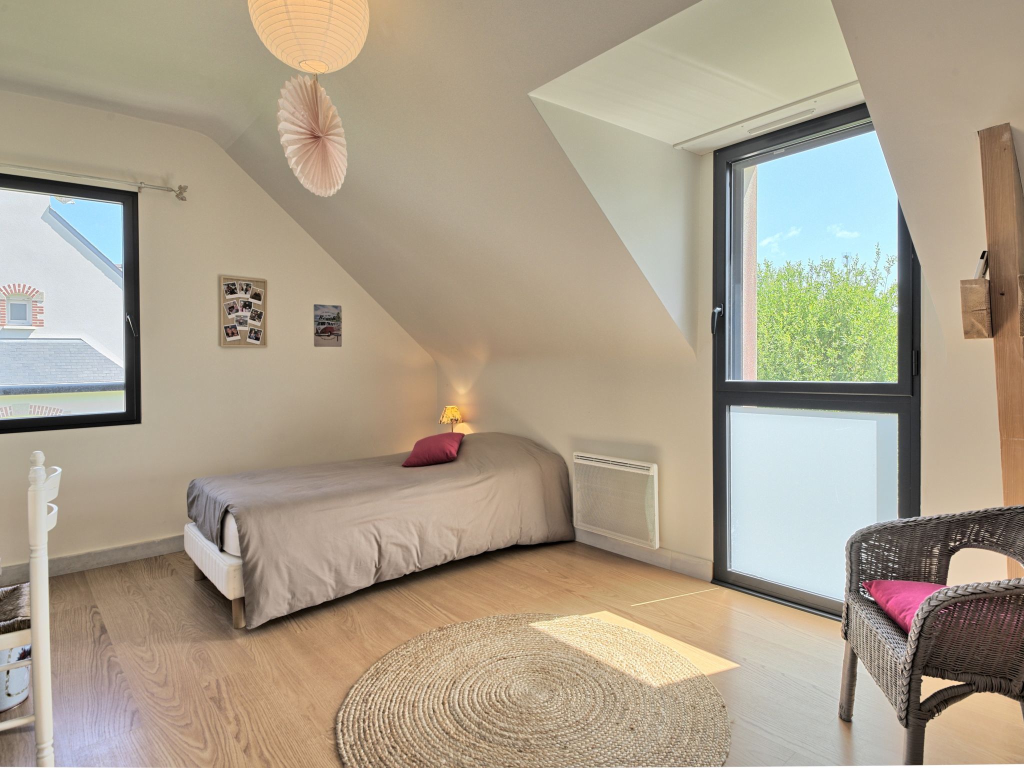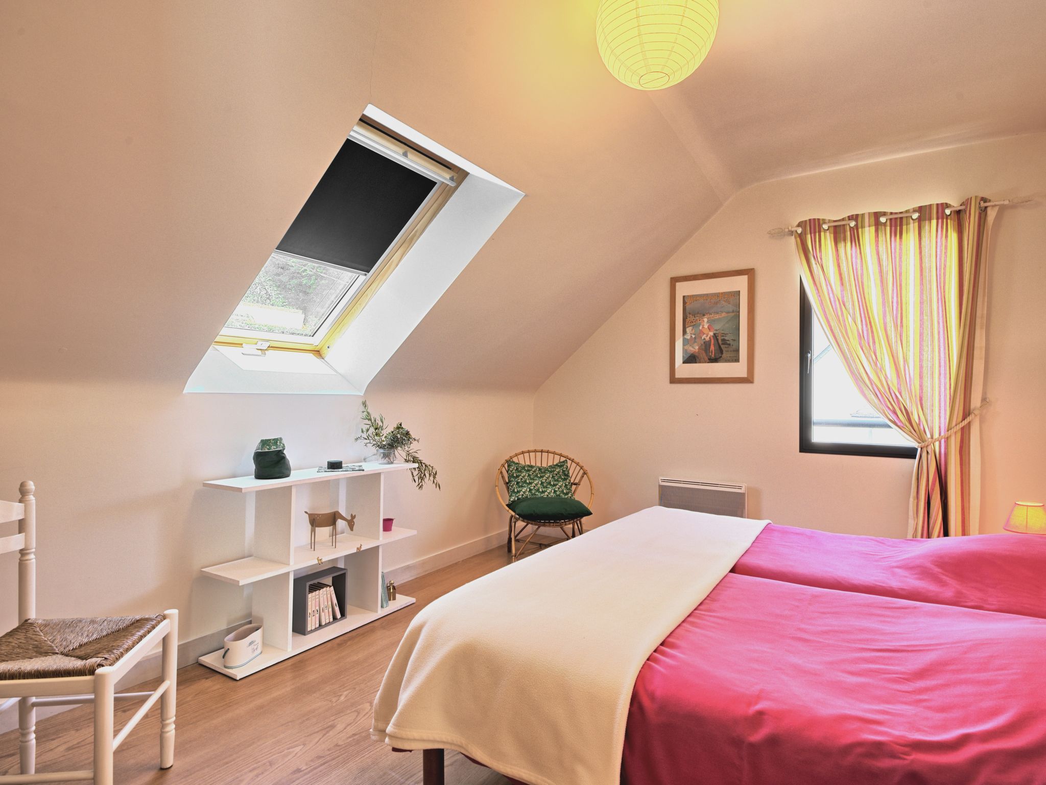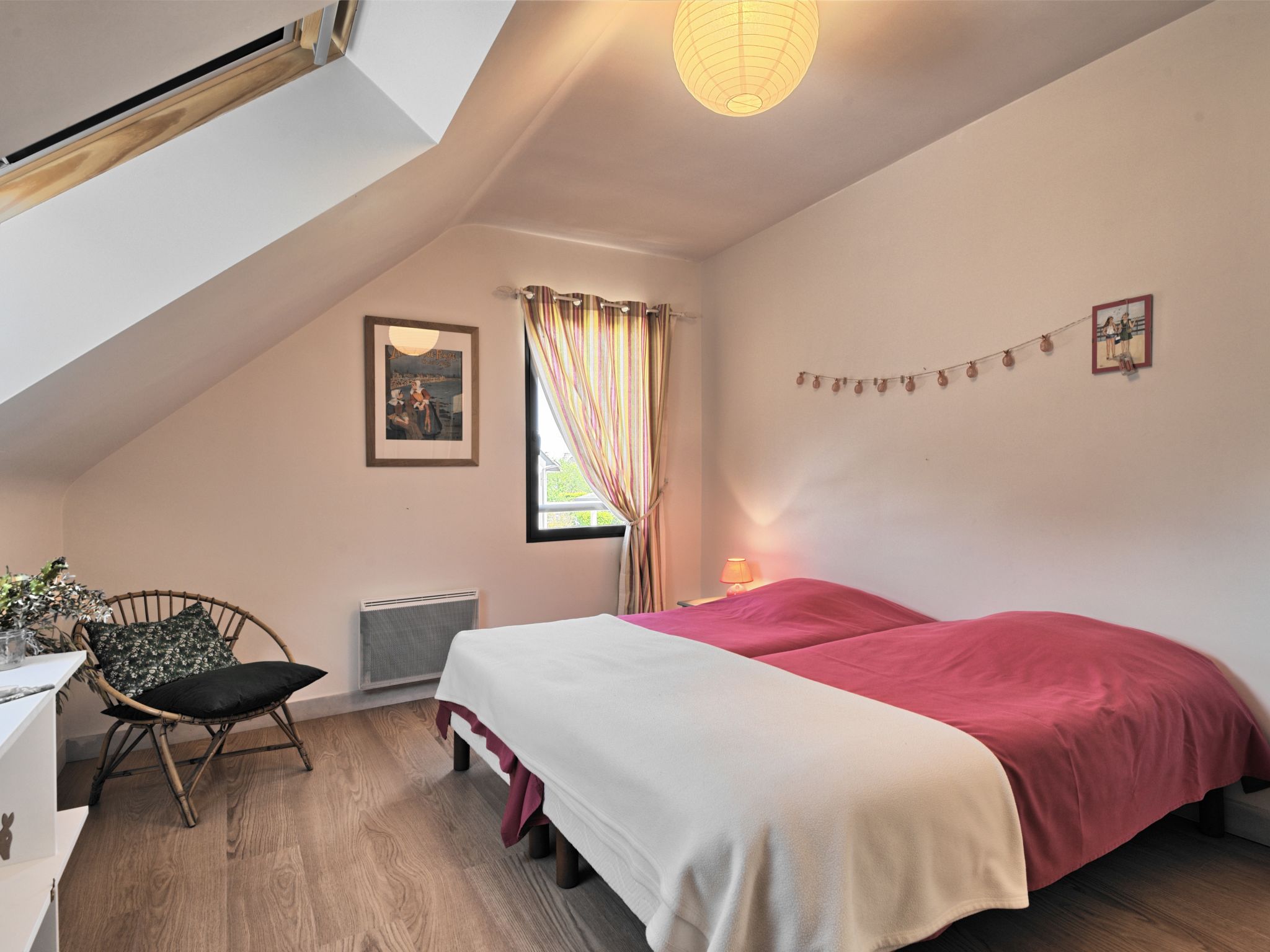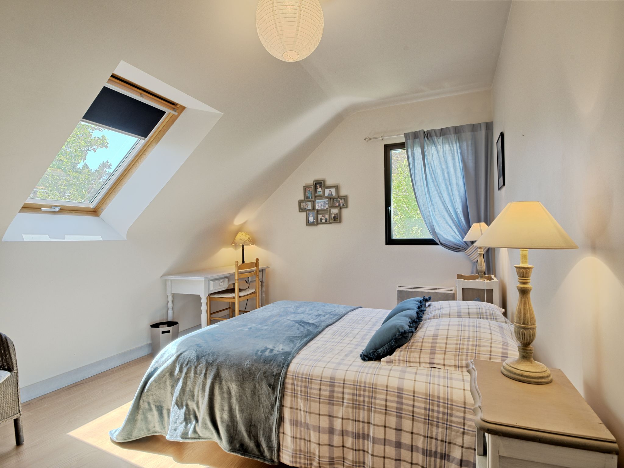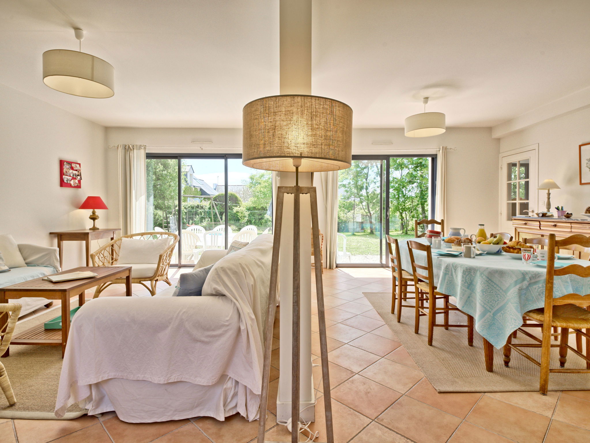 Maison 7 pièces 160 m2. Logement idéal pour 10 adultes. Spacieux et clair, aménagement très agréable: entrée. Grand séjour avec TV (écran plat), chaîne stéréo. Sortie sur le jardin. 1 chambre avec 1 grand-lit (140 cm, longueur 190 cm), douche/WC. Sortie sur le jardin. Cuisine (four, lave-vaisselle, 3 feux, grille-pain, bouilloire électrique, micro-ondes, congélateur, cafetière électrique). WC séparé. À l'étage supérieur: 1 chambre, mansardée avec 1 grand-lit (140 cm, longueur 190 cm). 1 chambre, mansardée avec 2 lits (90 cm, longueur 190 cm). 1 chambre, mansardée avec 1 lit double (2 x 80 cm, longueur 200 cm). 1 chambre, mansardée avec 1 lit (90 cm, longueur 190 cm). 1 chambre, mansardée avec 1 lit (90 cm, longueur 190 cm). Salle de bains, douche, WC séparé. Chauffage électrique. Meubles de terrasse, barbecue (portable), chaises longues (6). A disposition: lave-linge, fer à repasser, chaise haute pour enfant, lit bébé jusqu'à 2 ans. Internet (Connexion WIFI, gratuit). Veuillez noter: adapté(e) aux familles. Maison non-fumeur. Détecteur de fumée. Annonce d'un particulier (art 155, IV du CGI). 56214000115K7