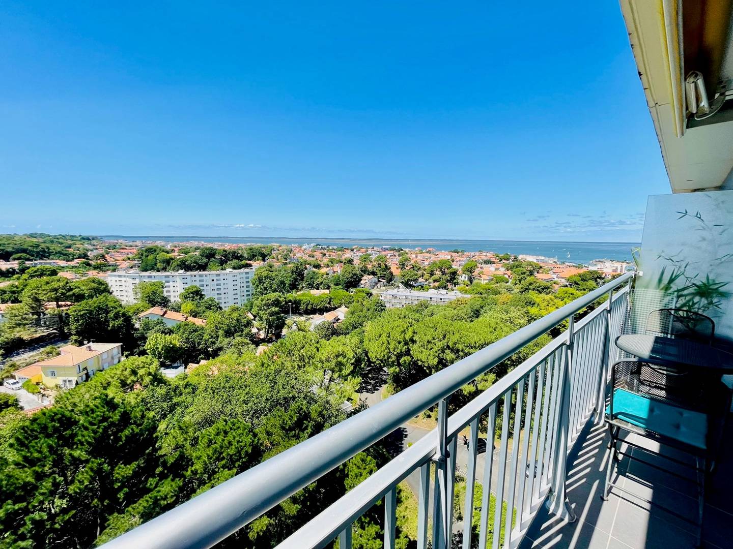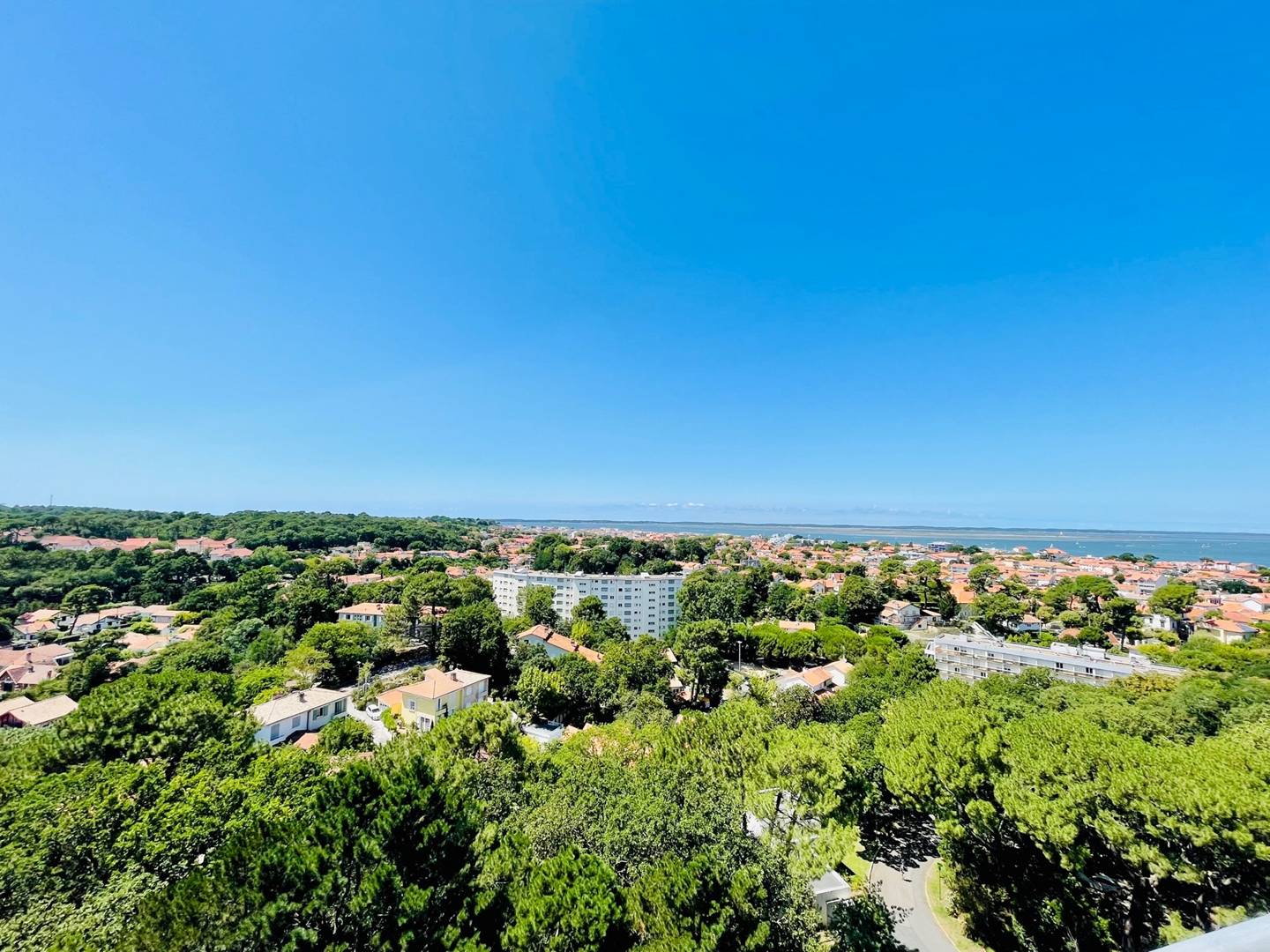 Dans une résidence de standing entourée de verdure, studio au 12ème étage d’environ 35 m² avec ascenseur disposant notamment d’une magnifique vue et d’un balcon à la parisienne. ARCACHON, VILLE D’AUTOMNE – MAGNIFIQUE VUE DOMINANTE SUR VILLE ET BASSIN !