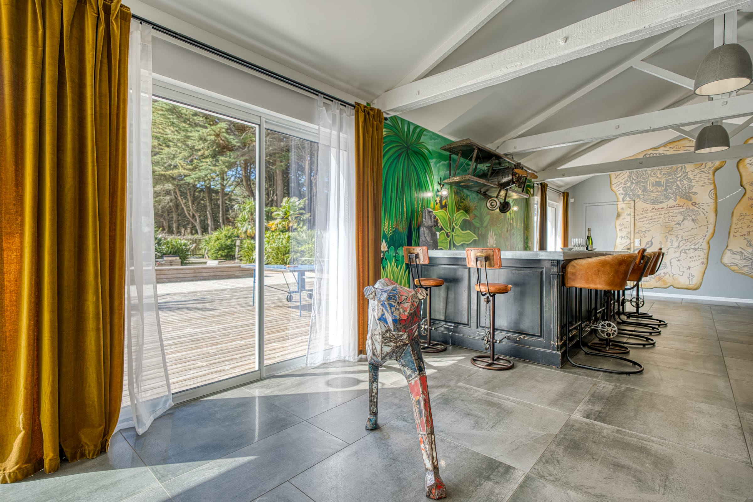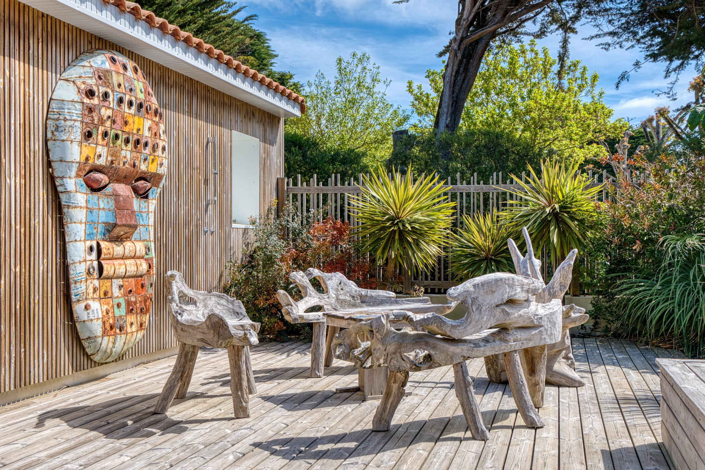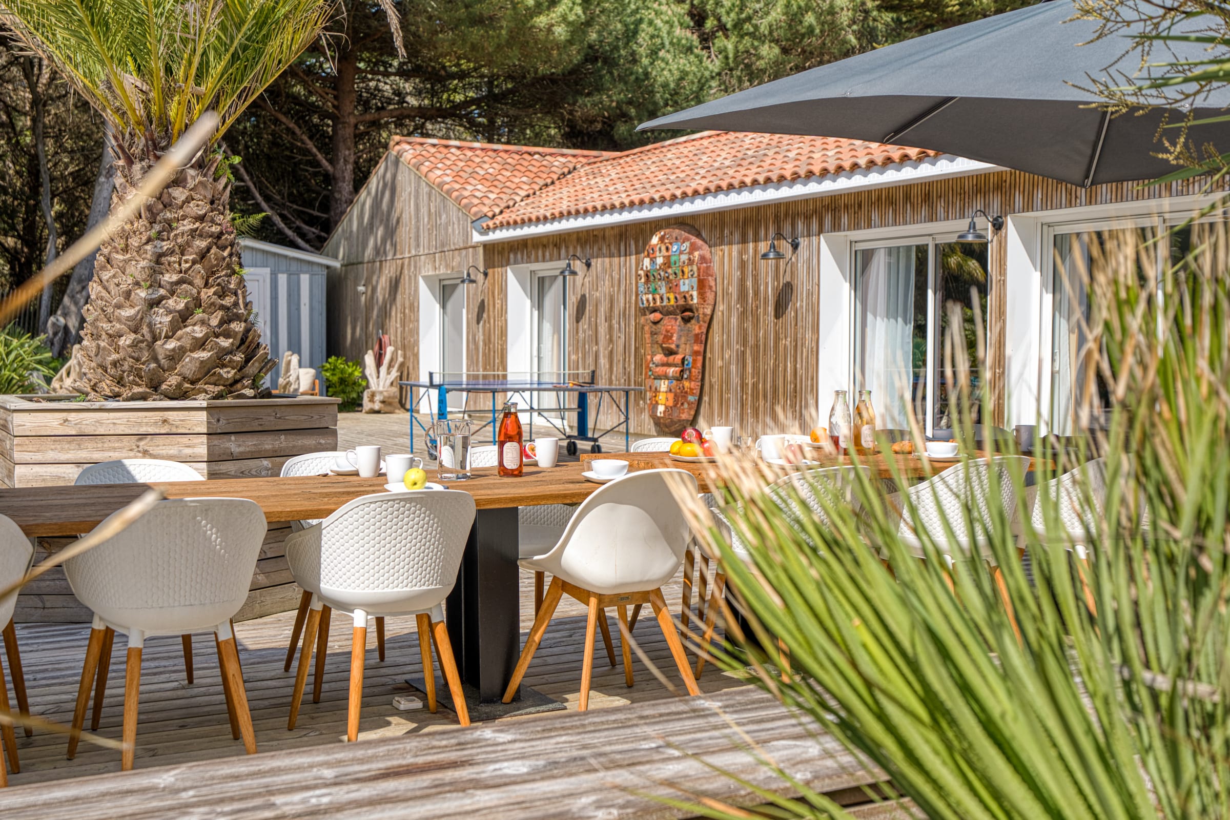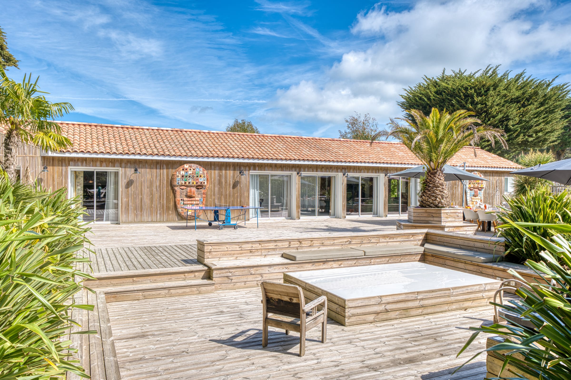 A l’extérieur, vous trouverez une grande terrasse privative avec un beau mobilier de jardin, barbecue et plancha à gaz, hamacs, ainsi qu’un spa de nage (en option). Un aquabike est mis à votre disposition.