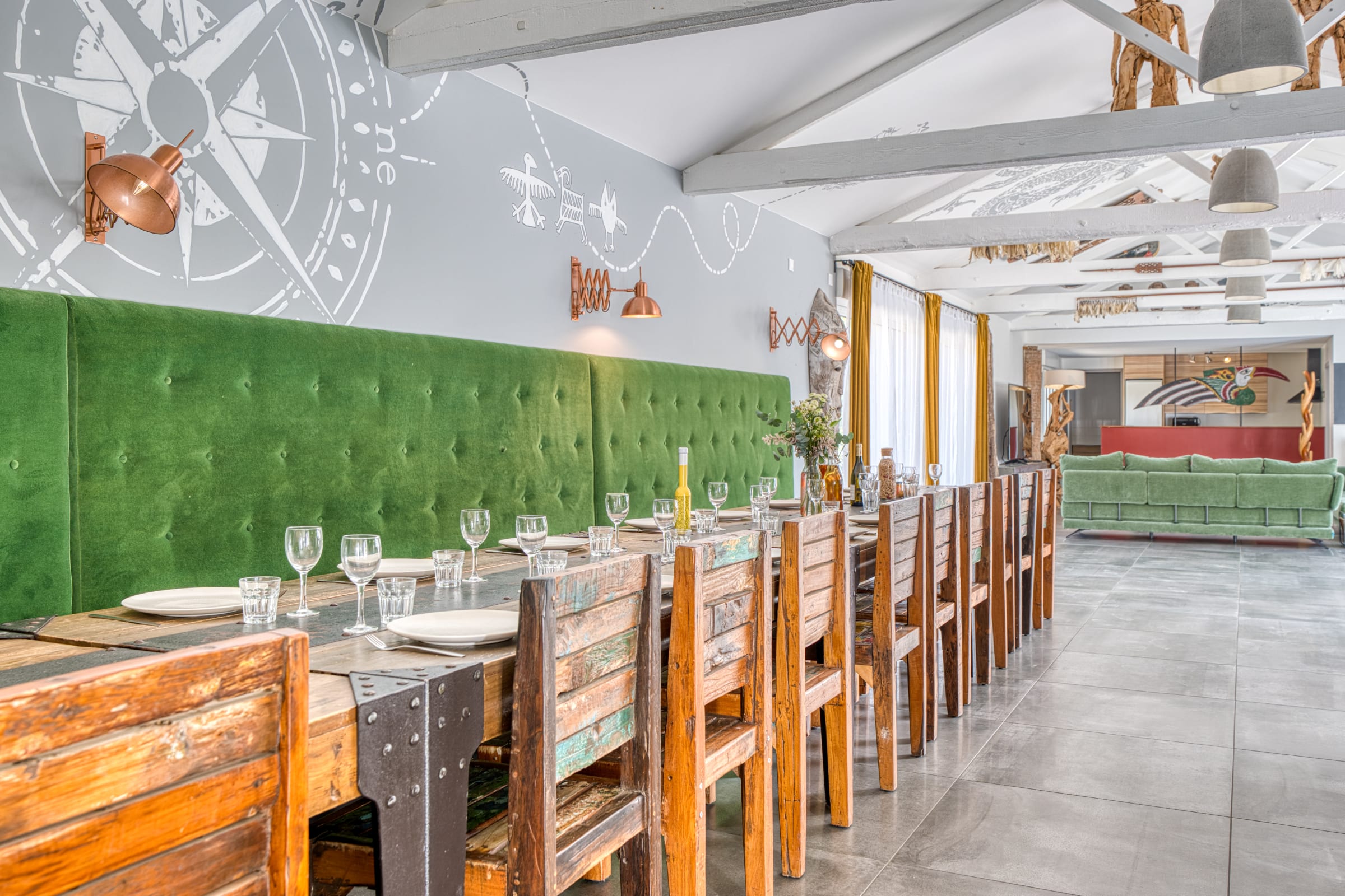 Un espace détente avec babyfoot et jeux de société.